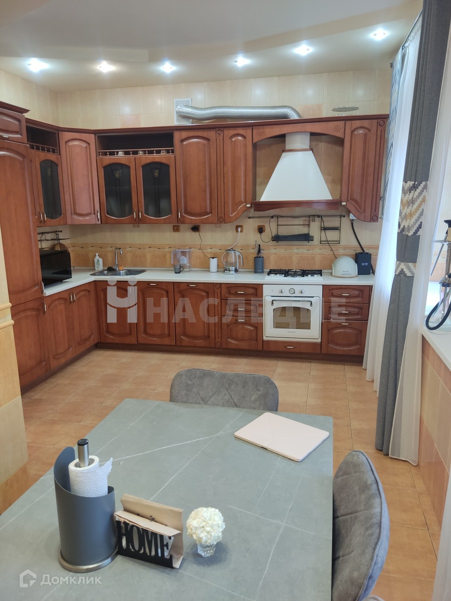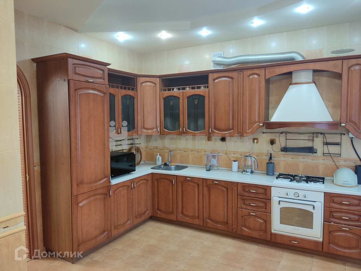 Площадь квартиры составляет 223 квадратных метров. Дом находится на закрытой территории с видеонаблюдением. Квартира со своим изолированным участком и  отдельным входом. В квартире выполнен качественный ремонт, потолки многоуровневые с точечным освещением. Просторные, изолированные комнаты. Три санузла, просторный цокольный этаж с сауной и зоной отдыха, для большой компании, также в цоколе несколько изолированных подсобных помещений. При продаже остается кухонный гарнитур с встроенной техникой, частично мебель.