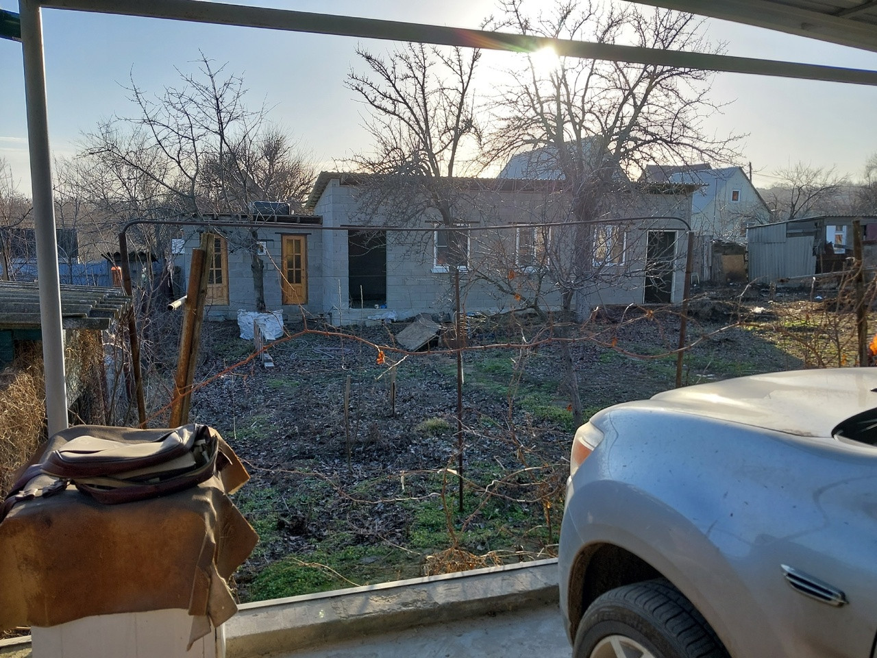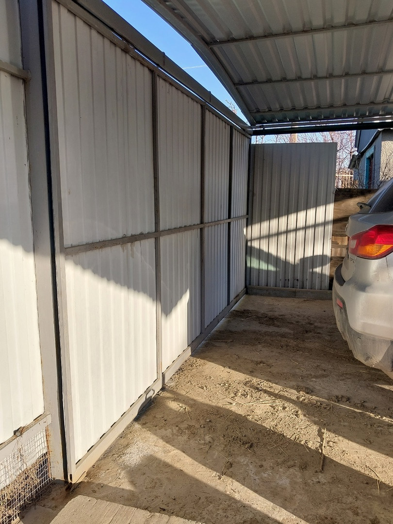 - выровнена и забетонирована площадка для авто с навесом из металопрофиля;