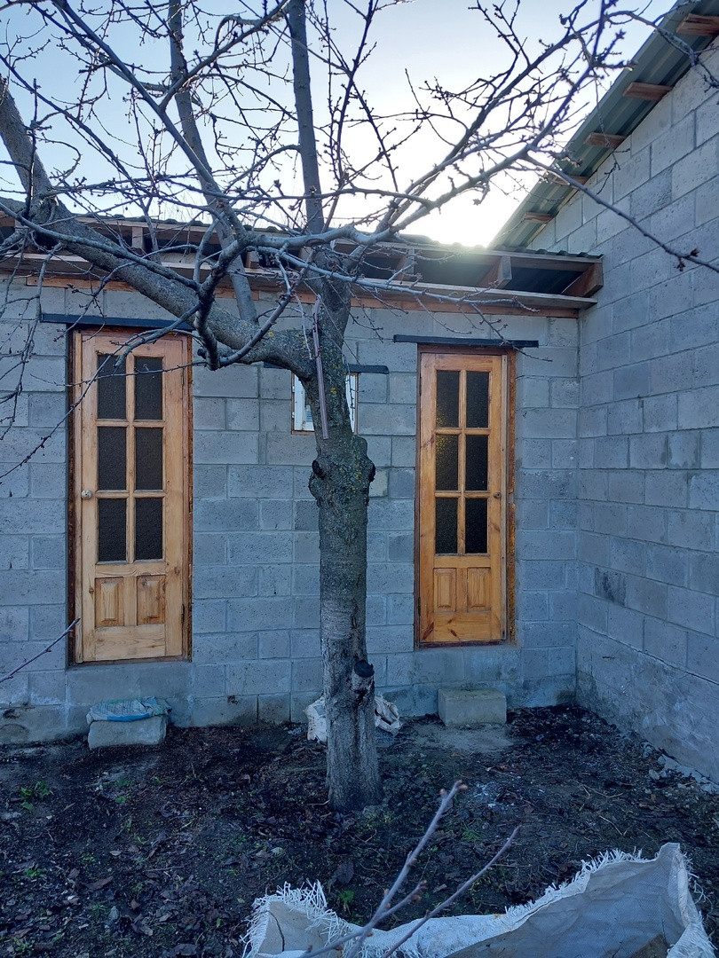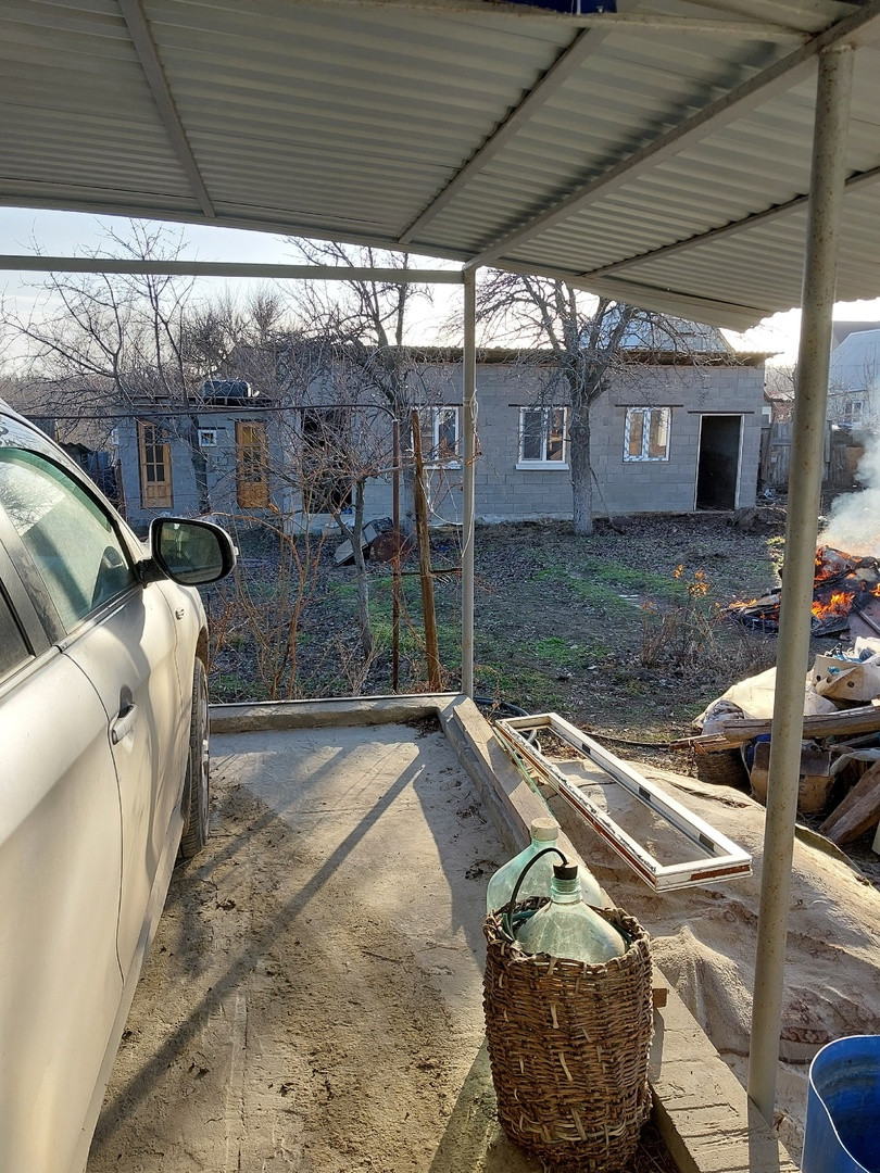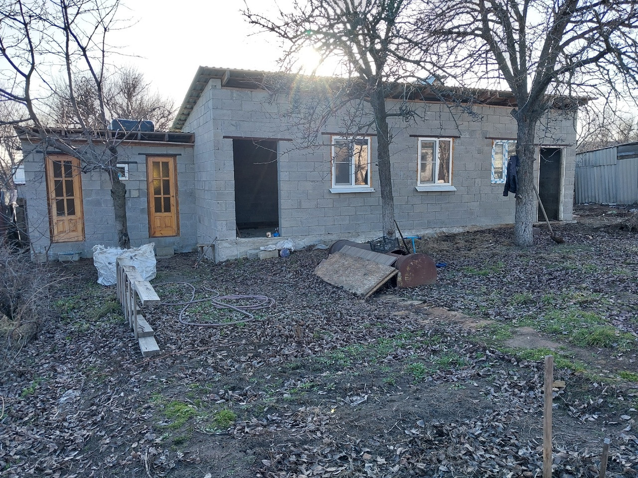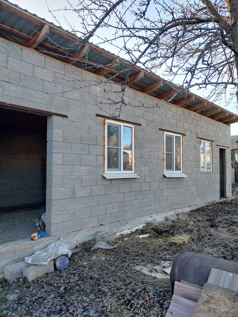- новое жилое строение из керамзито-блоков размером 50 кв.м. (вставлены пластиковые окна, крыша из металопрофиля утеплена, потолок из OSB плит (осталось вставить двери и выполнить внутреннюю отделку);