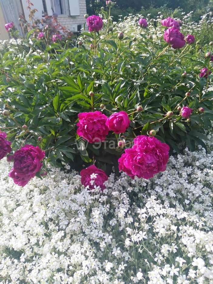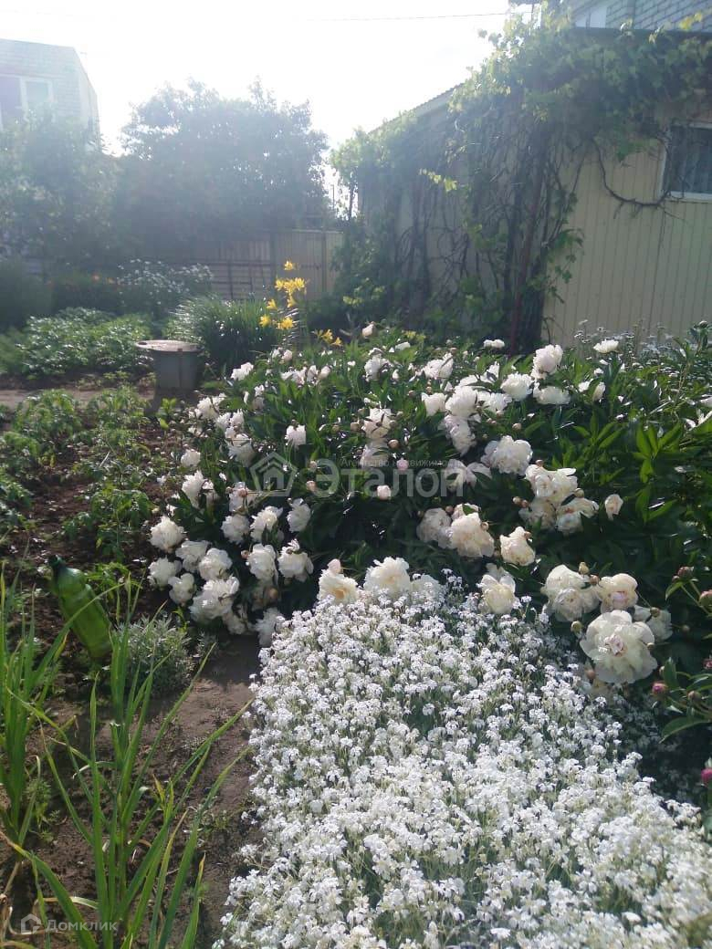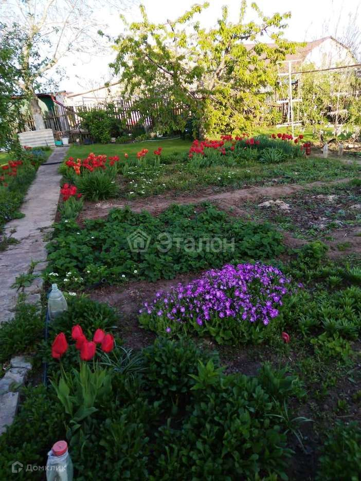 На участке плодовые деревья: черешня, 2 яблони, орех, 2 вишни, плодоносящие кустарники. Ухоженный огород. Красивый и ухоженный цветник с многолетними растениями. Цветущие многолетние кустарники.