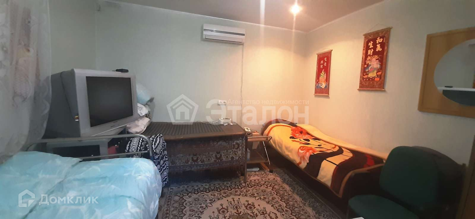 В спальне сплит-система, работающая на охлаждение и обогрев.
