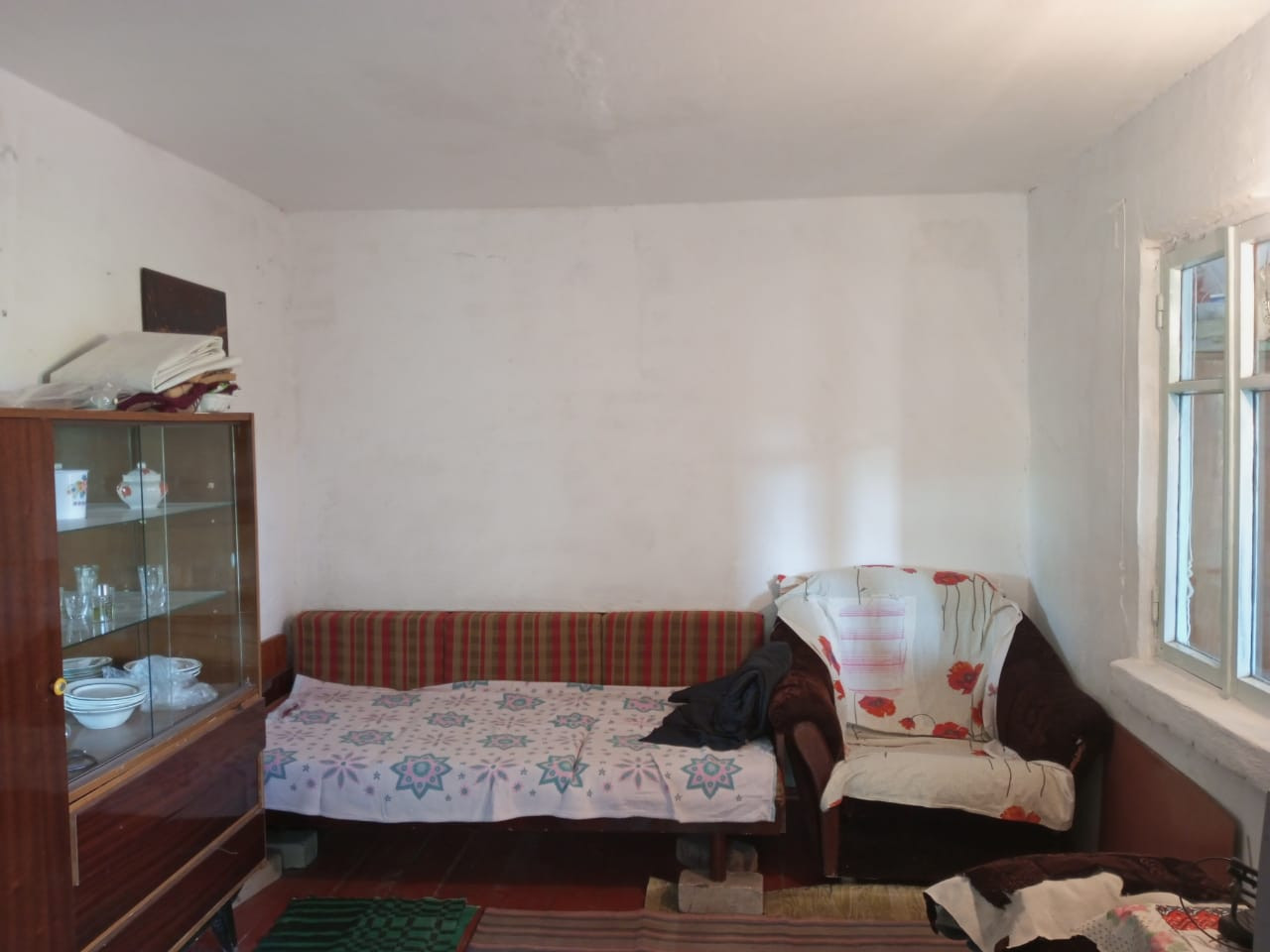 Имеется сад: яблоки, сливы, груши, персики, четыре вида сортового винограда, огурцы, картошка, помидоры,томат, морковь, чеснок и т.д