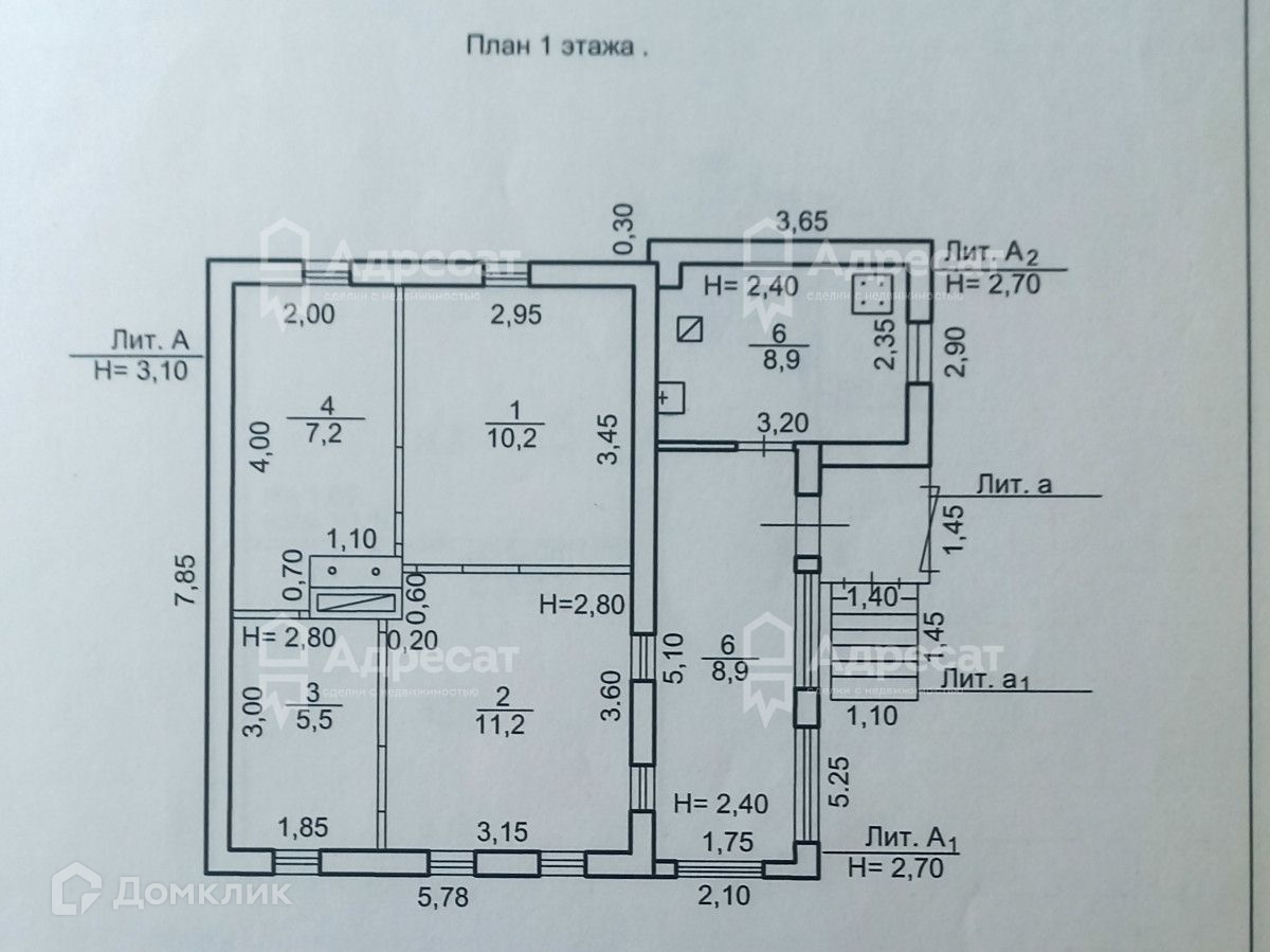 Четыре жилые комнаты, кухня на первом этаже.