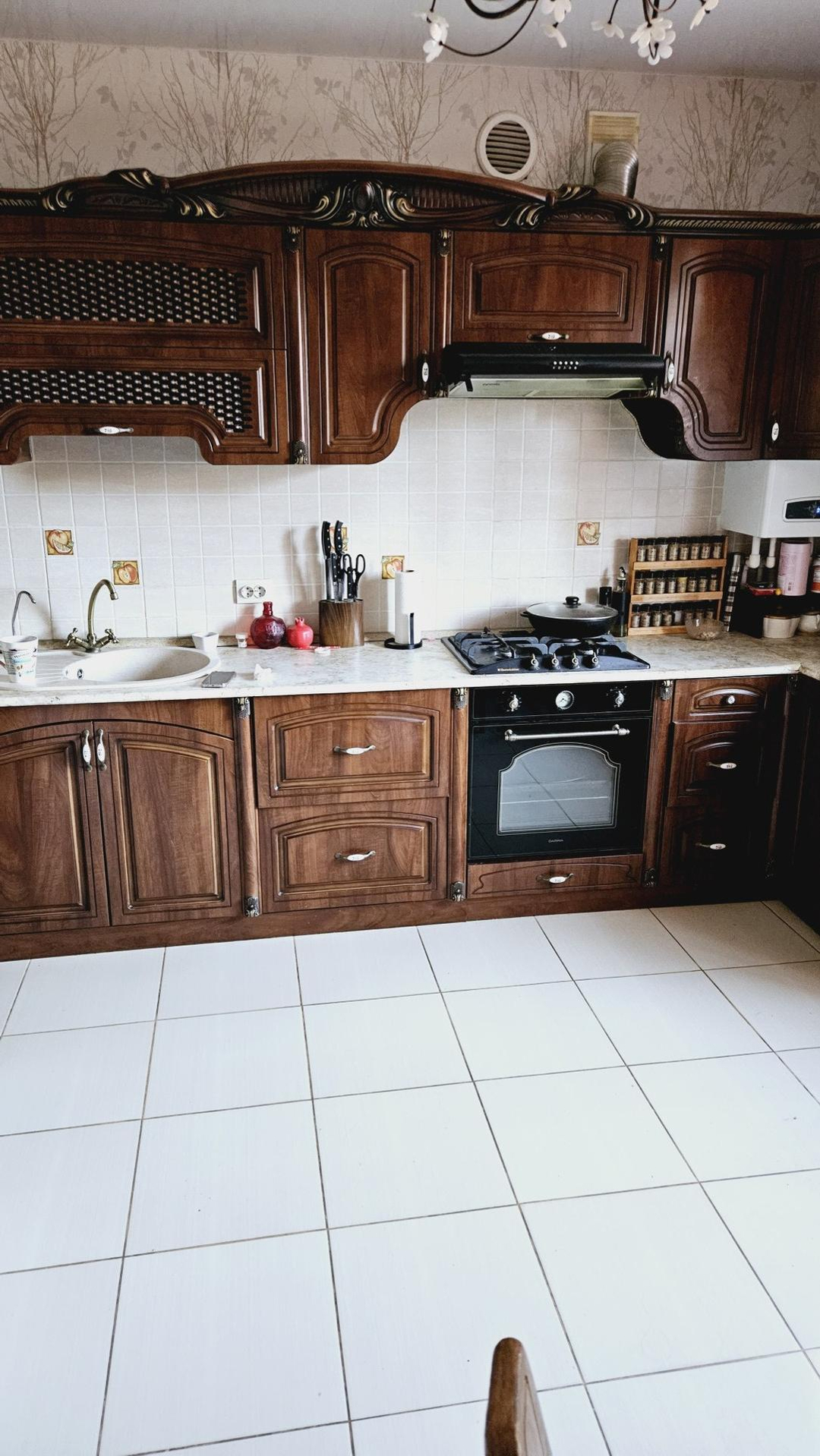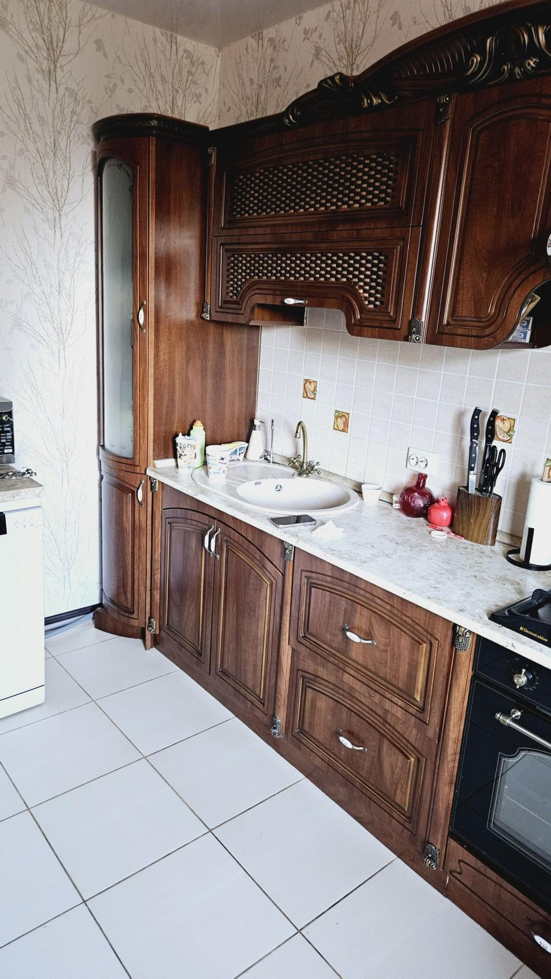 В доме остаётся кухонный гарнитур и часть мебели с техникой.
