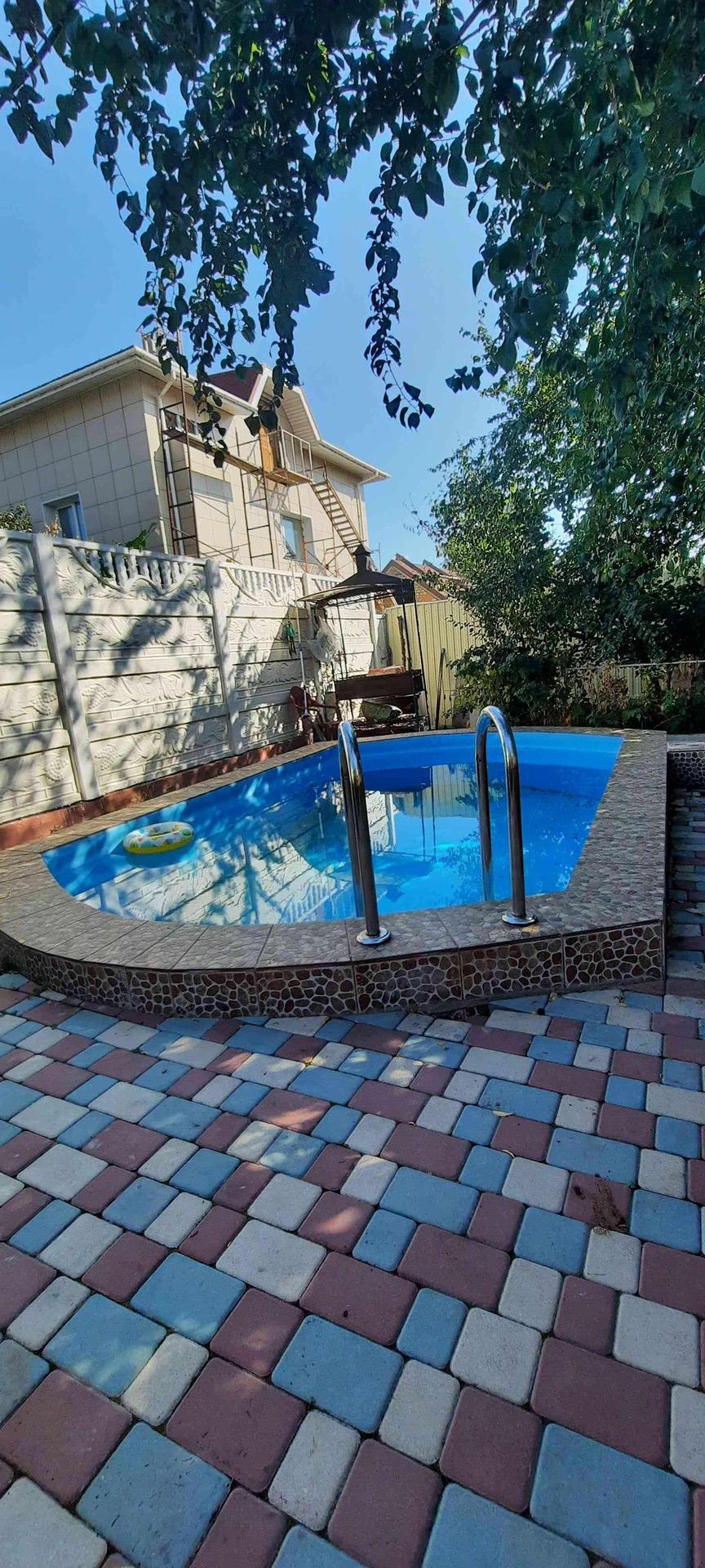 Продаём земельный участок 6.5 соток (ровный) и дом на нём: кирпичный с ж/б перекрытиями с основательным фундаментом. На участке расположены:  два гаража, летняя кухня, бассейн, беседка и фонтан.
