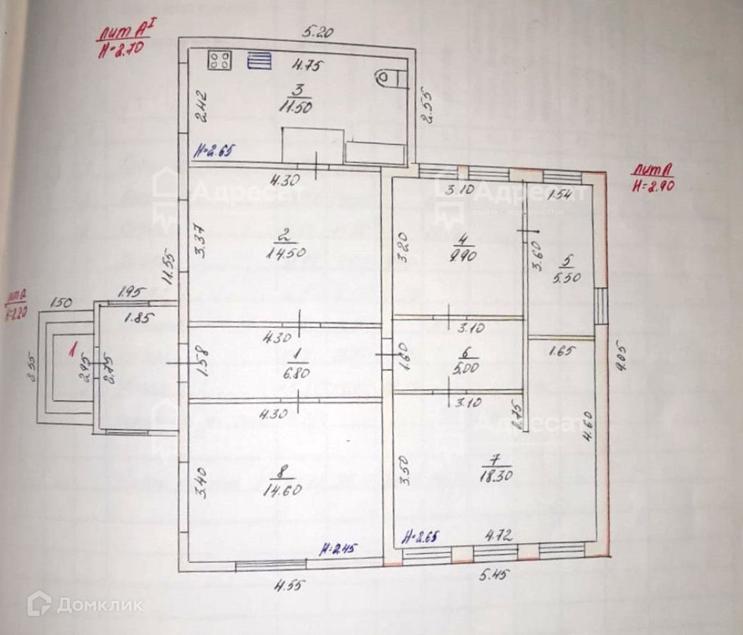 Высота потолков 2.6 м