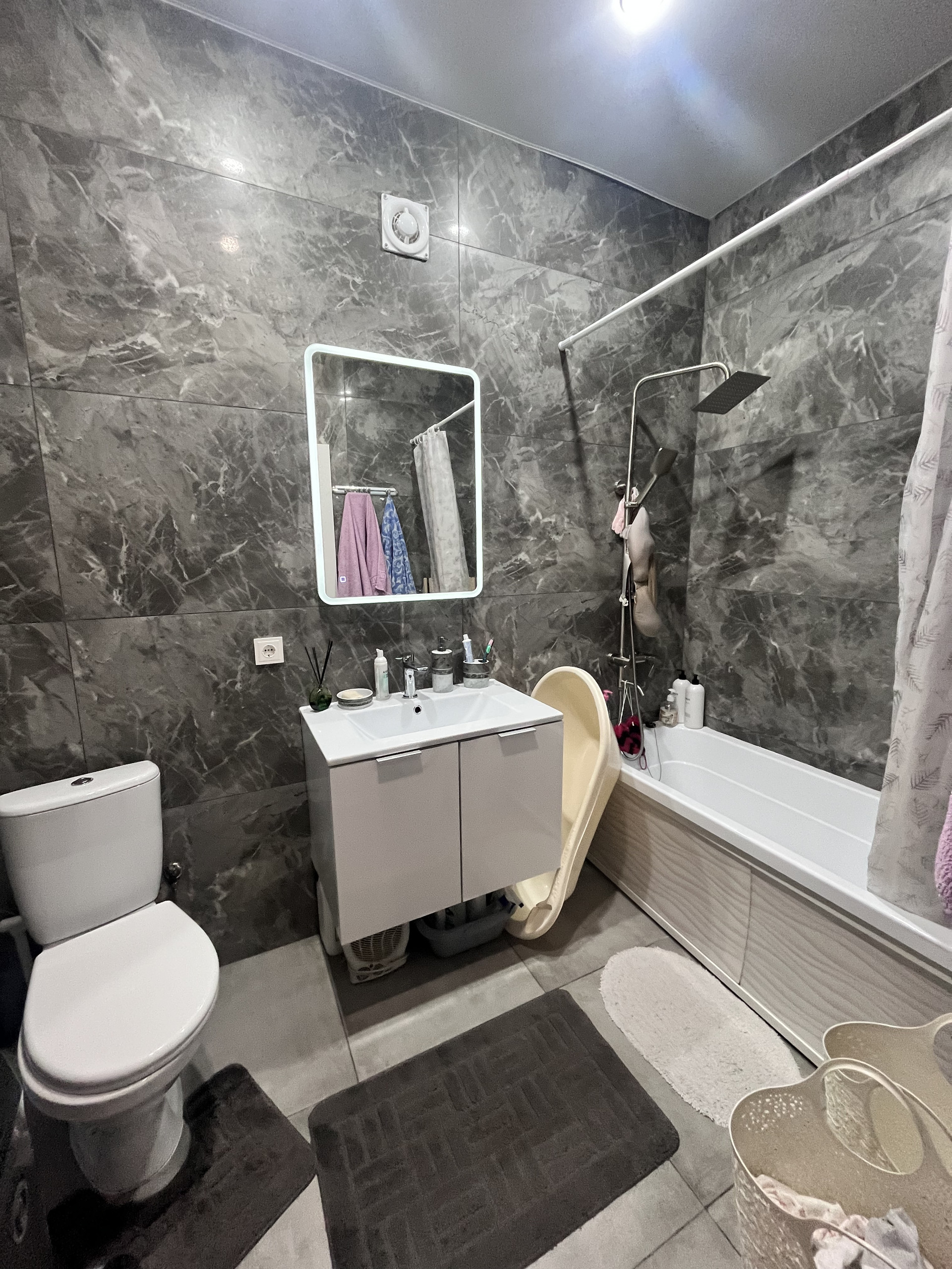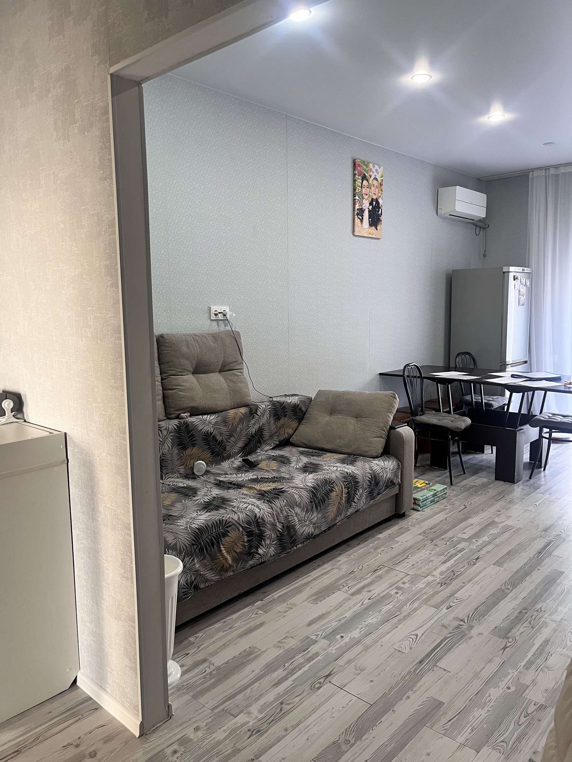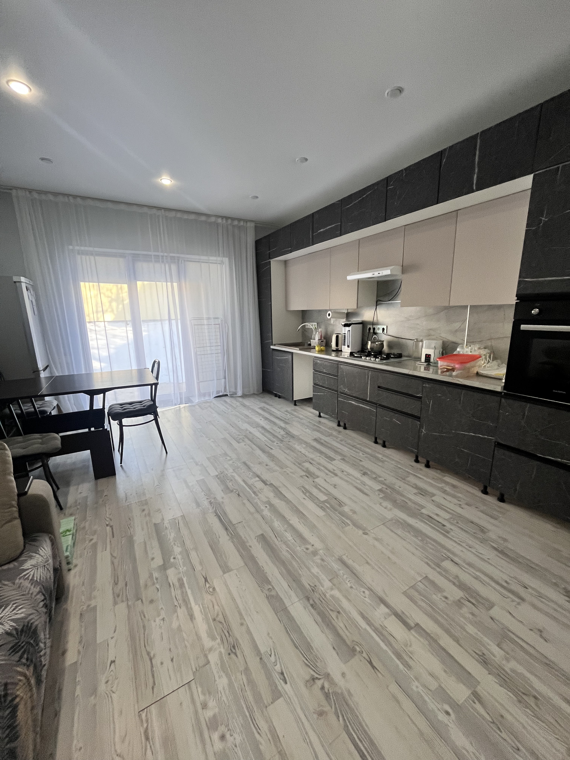 При продаже остается кухонный гарнитур, сплит-система, шкаф-купе, мебель в ванной комнате. По договоренности большой холодильник, духовой шкаф.