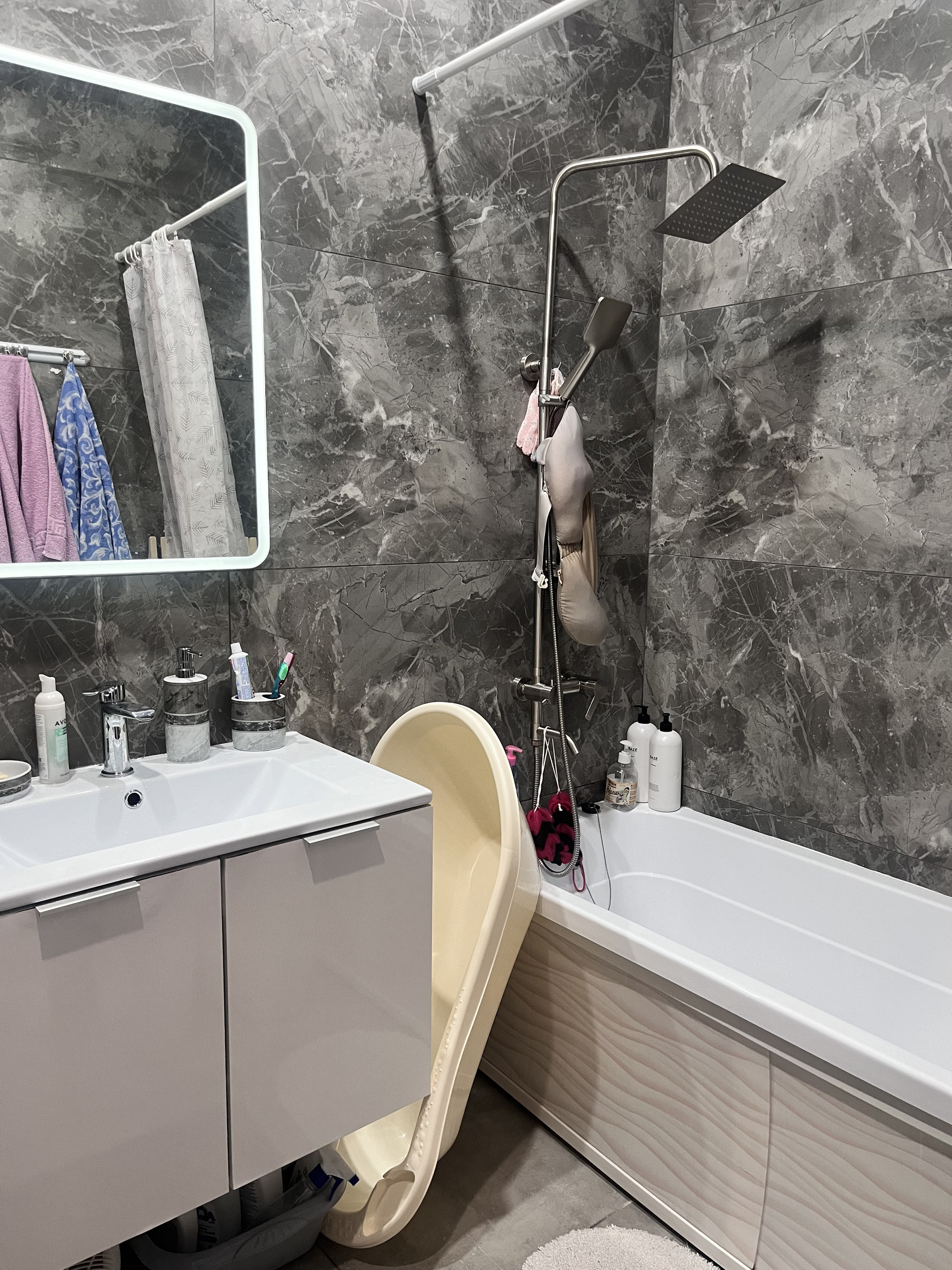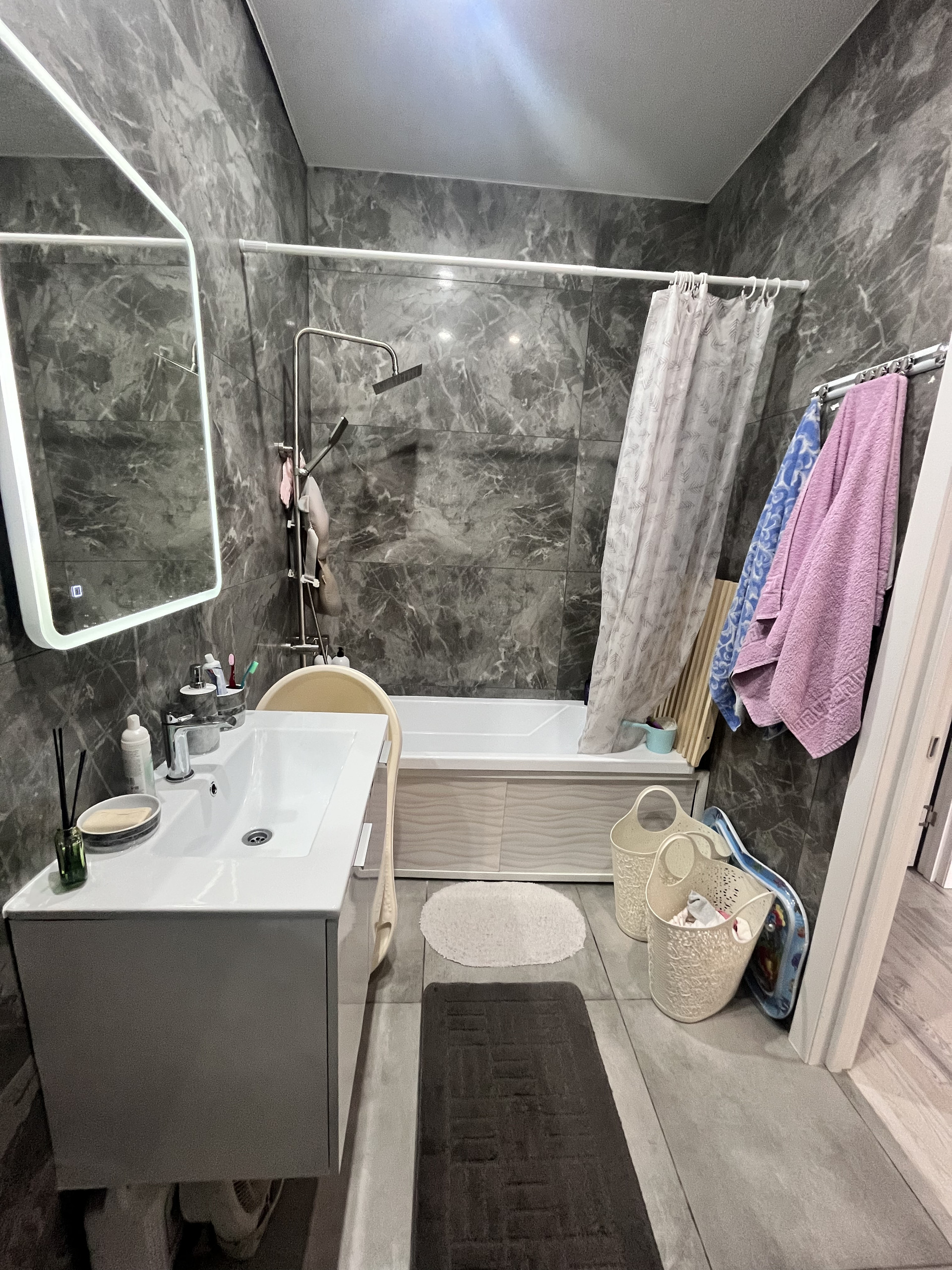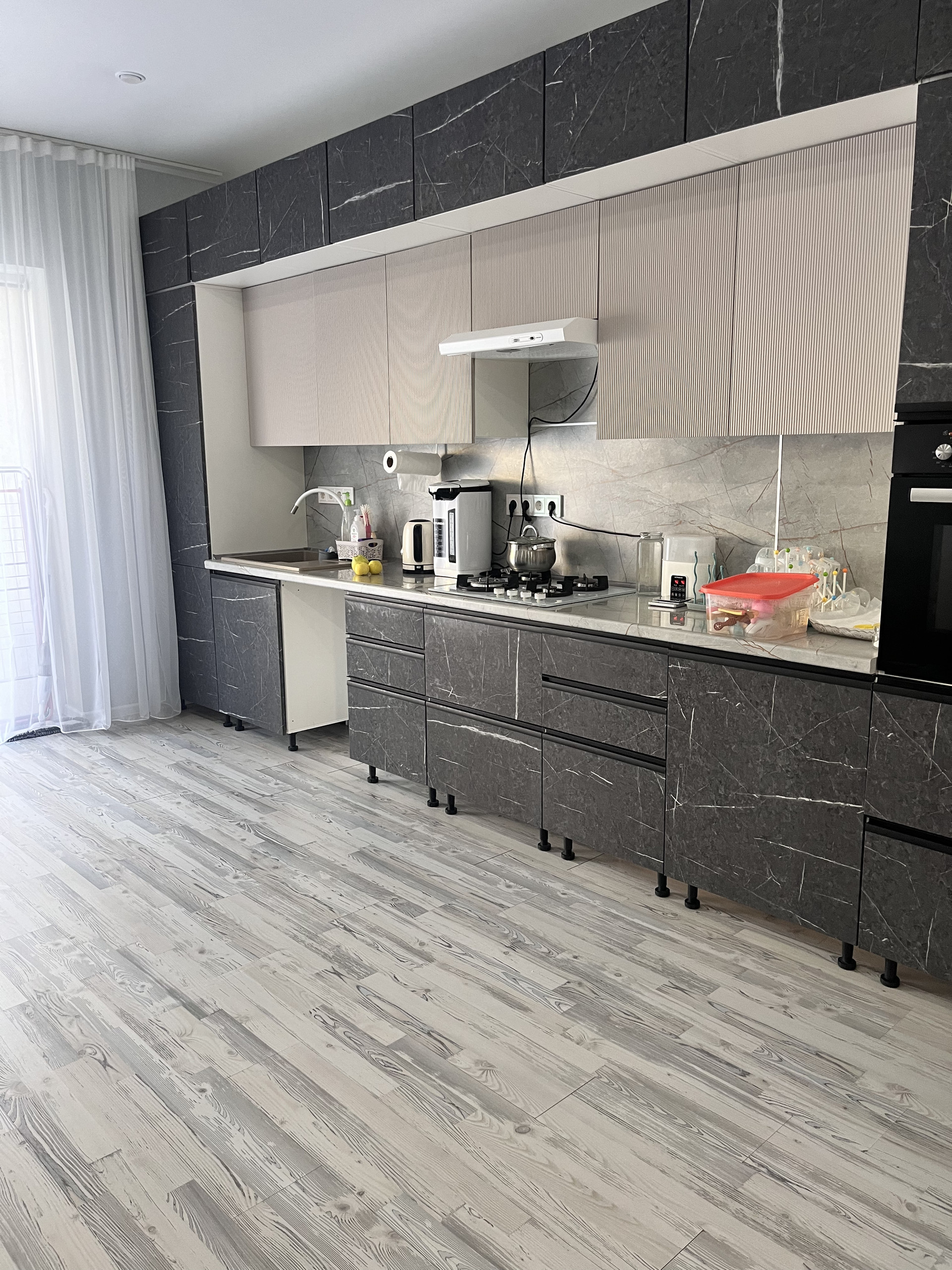 При продаже остается кухонный гарнитур, сплит-система, шкаф-купе, мебель в ванной комнате. По договоренности большой холодильник, духовой шкаф.