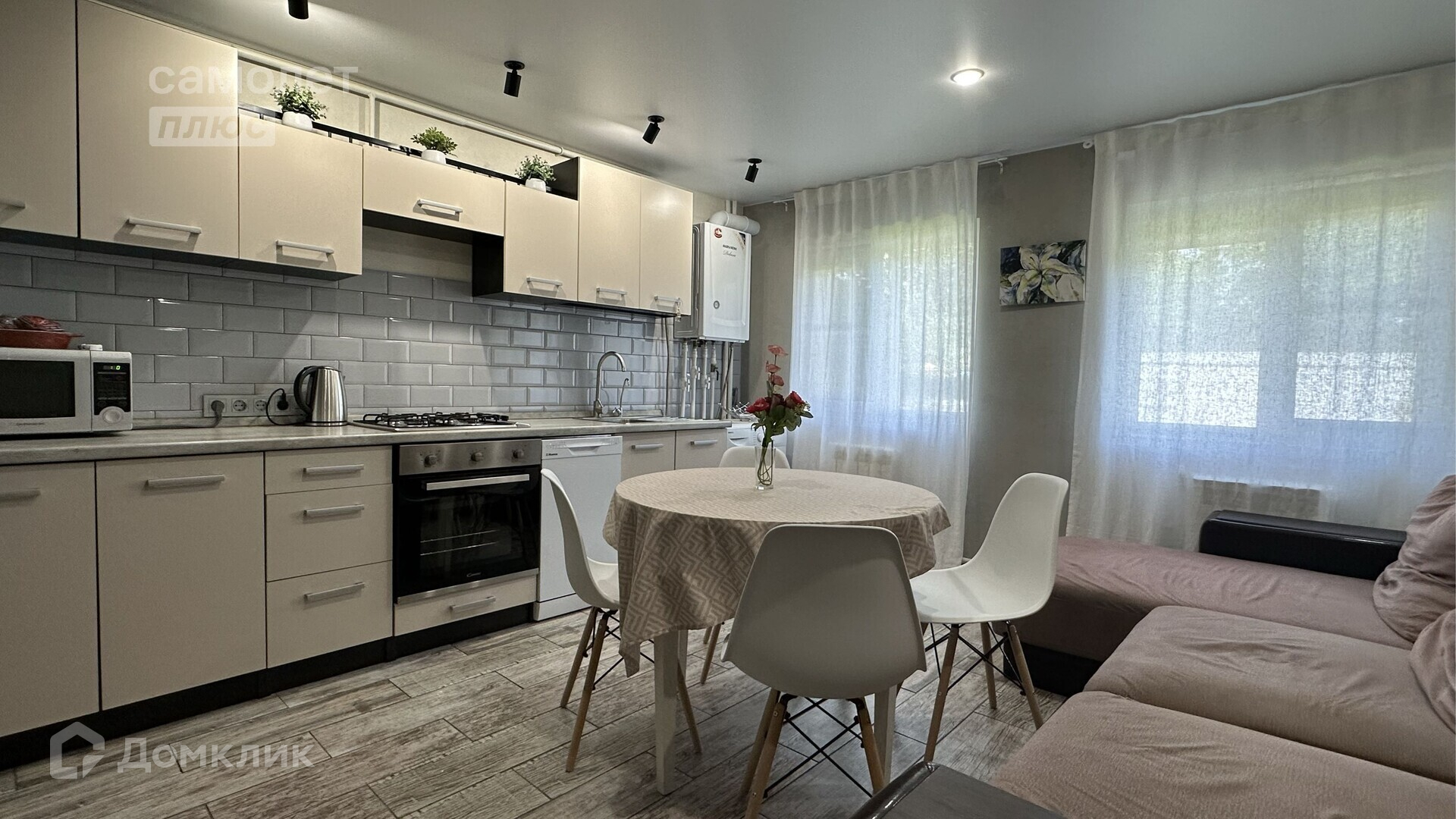 Ремонт современный, свежий. Есть все центральные коммуникации, двухконтурный котел на 360 кв.м.