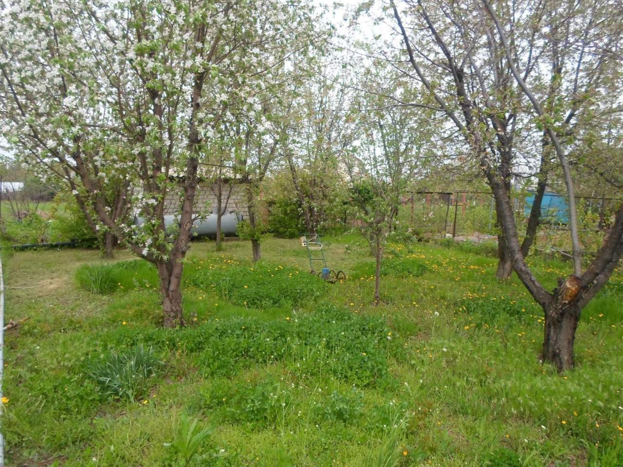 плодоносящие насаждения: слива, абрикос, черешня, вишня, яблоня, груша, виноград, клубника, малина, смородина, айва.
