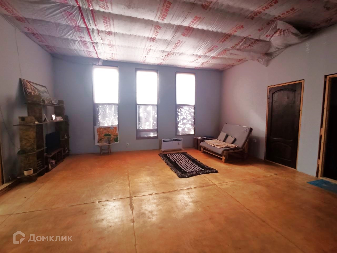 Дом одноэтажный. Каркасный, кровля металлопрофиль. Высота потолков 3 метра.