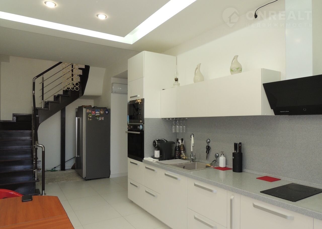 В доме полностью выполнен ремонт, обставлен мебелью и оборудован техникой. На втором этаже все окна панорамные. Качественные стеклопакеты. Есть выход на балкон. Потолки каркасные с точечными светильниками и светодиодной подсветкой. Стены покрашены. На полу ламинат. Санузел облицован кафелем. Установлена сантехника и мебель для ванных комнат. Кухонный гарнитур выполнен под заказ. Оборудован встроенной техникой(варочная поверхность, духовой шкаф, вытяжка, посудомоечная машина). В каждой комнате установлены сплит-системы.