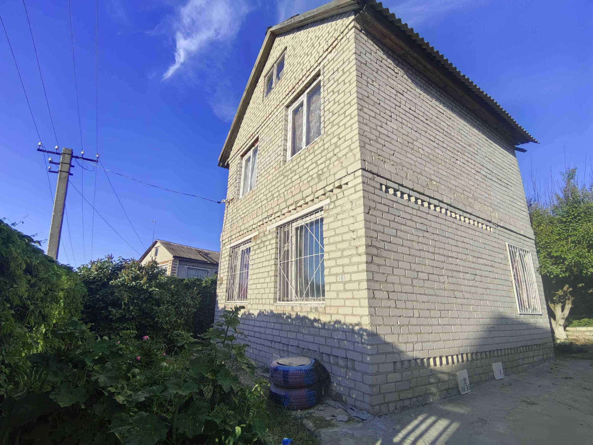 Газ ведут по улицам, свет в доме, вода поливная, есть ёмкость большая для набора воды.