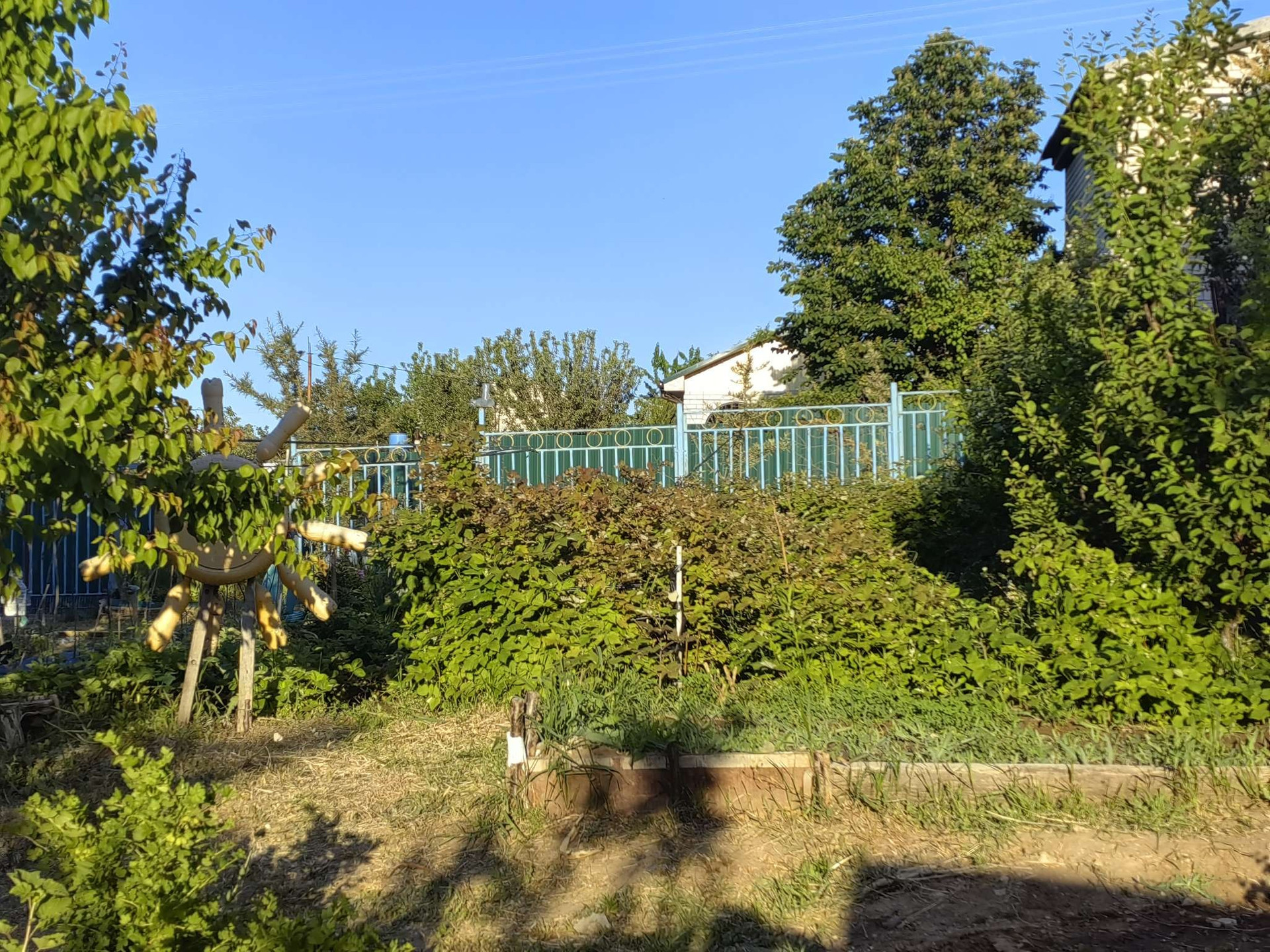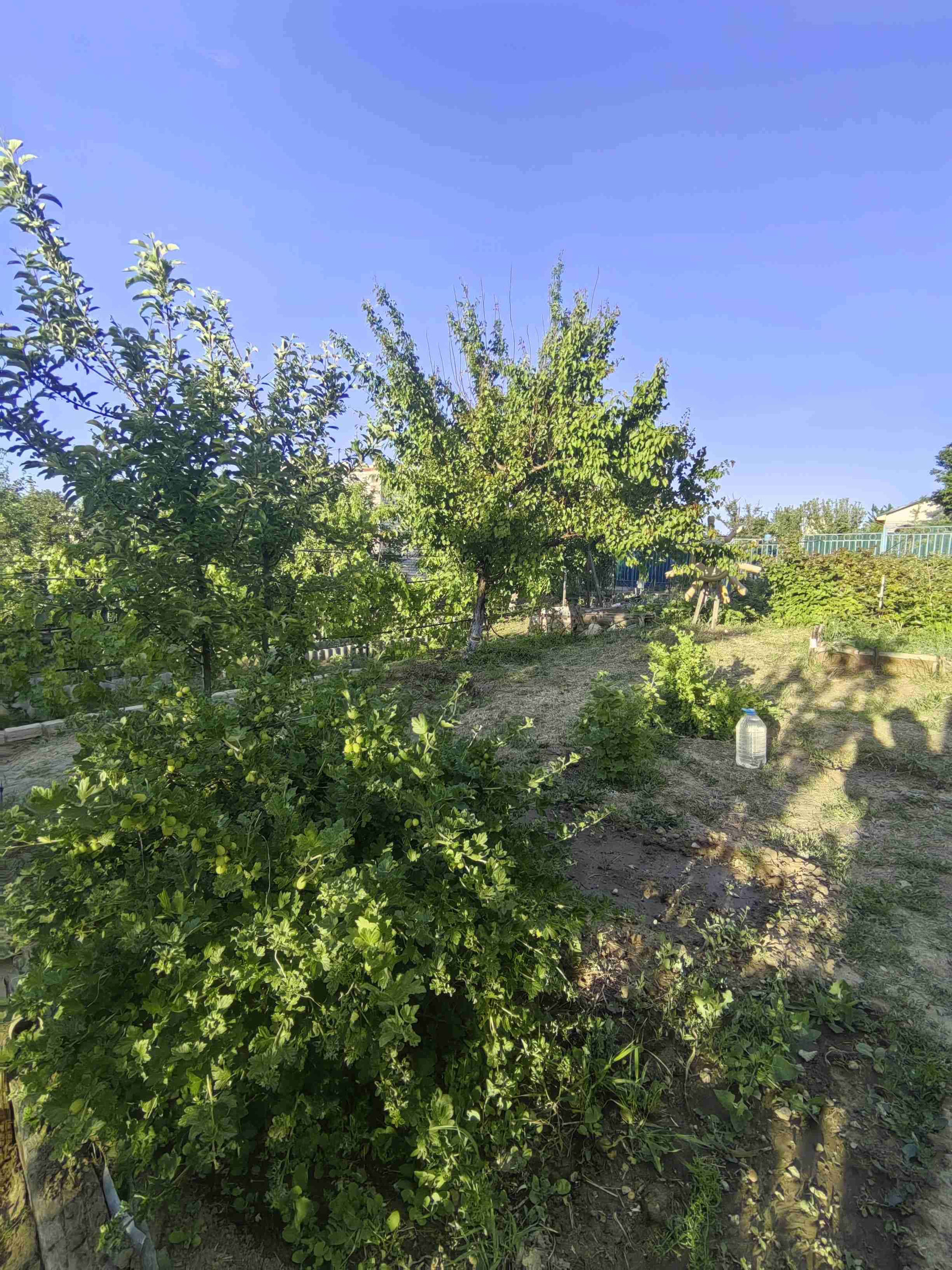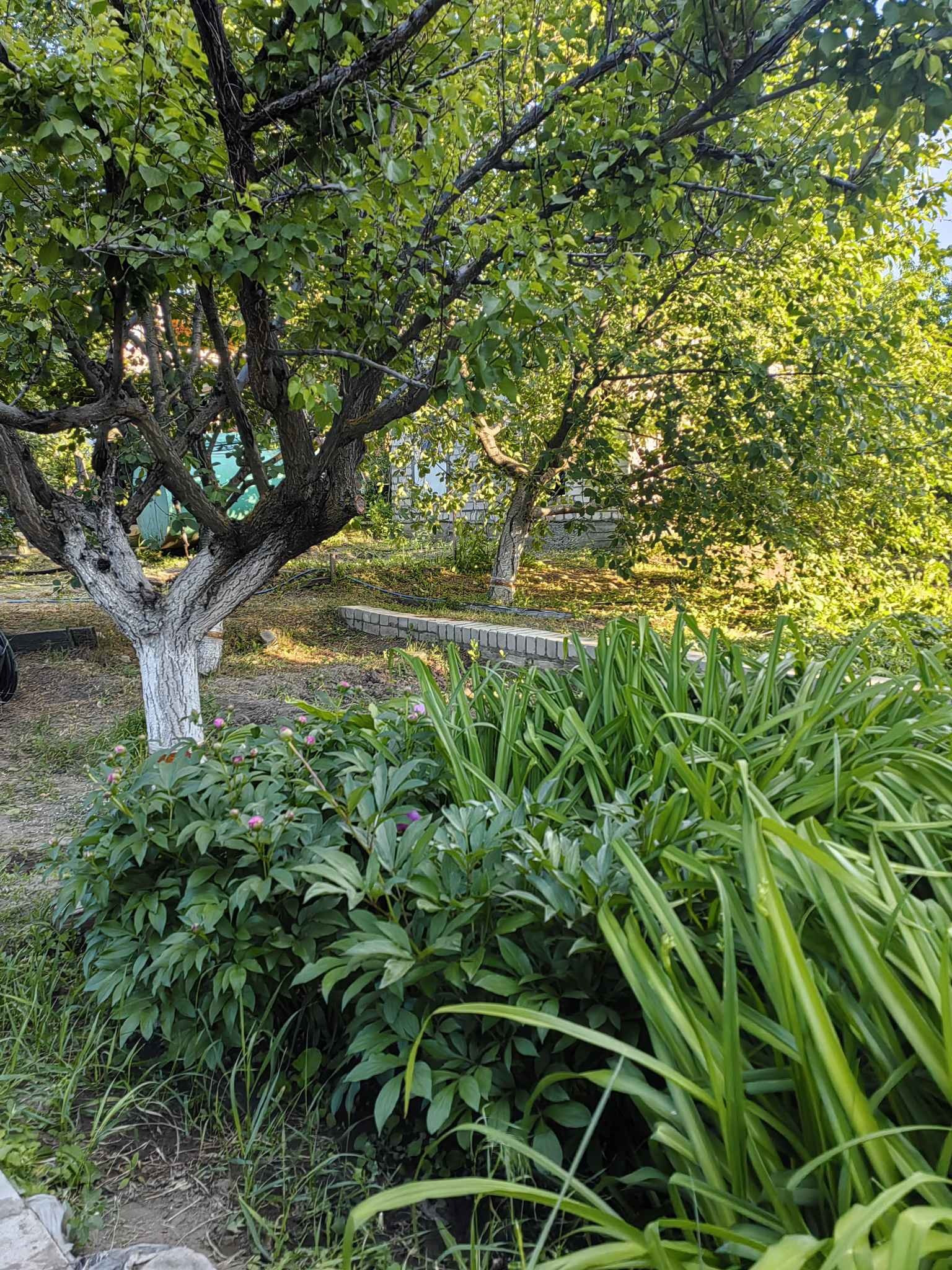 Много плодовых деревьев:персик, яблони скороспелка, поздние, семеренка, а так же сливы, орех грецкий, вишня, абрикос -5 деревьев, груша, вишня.