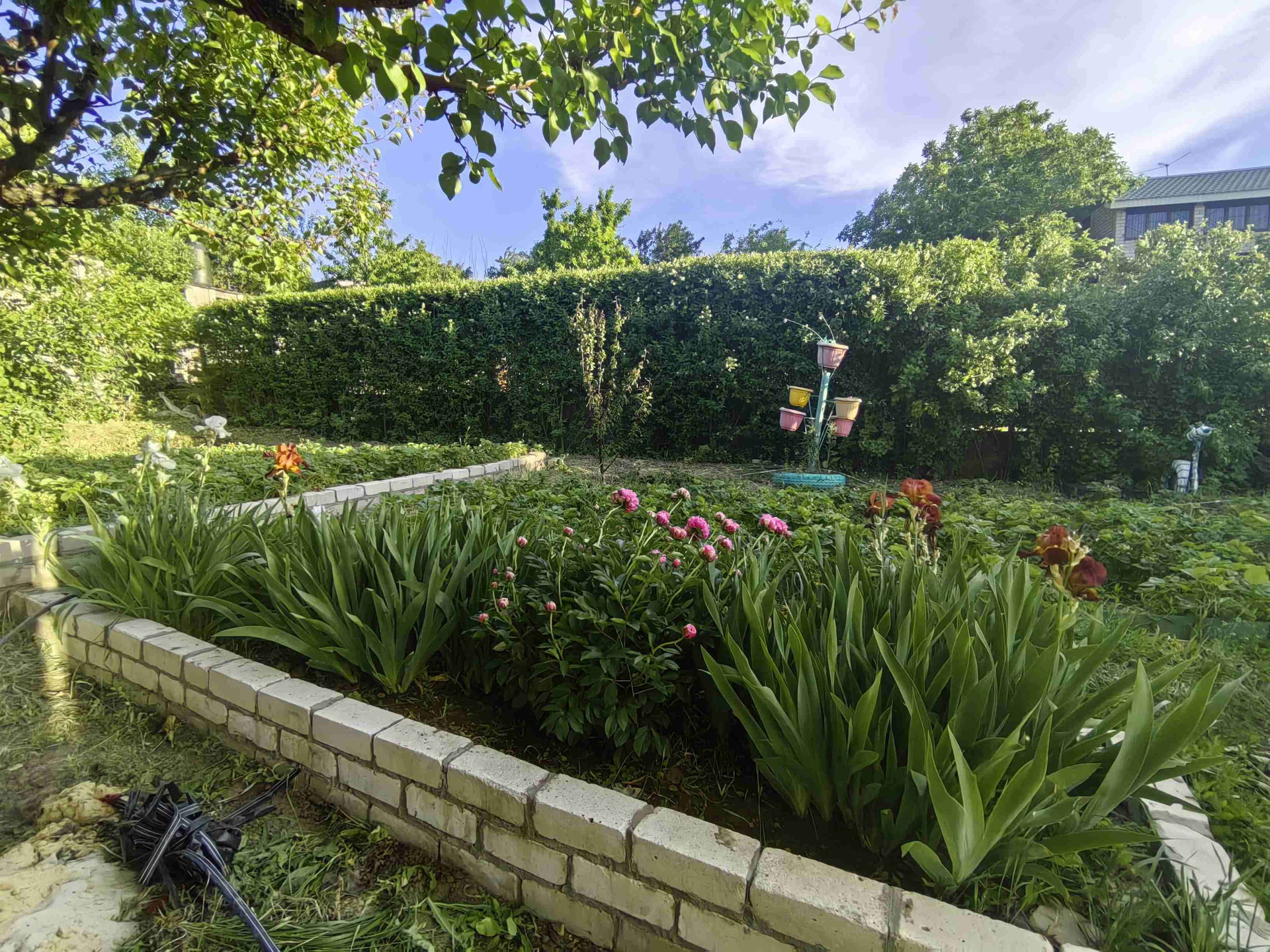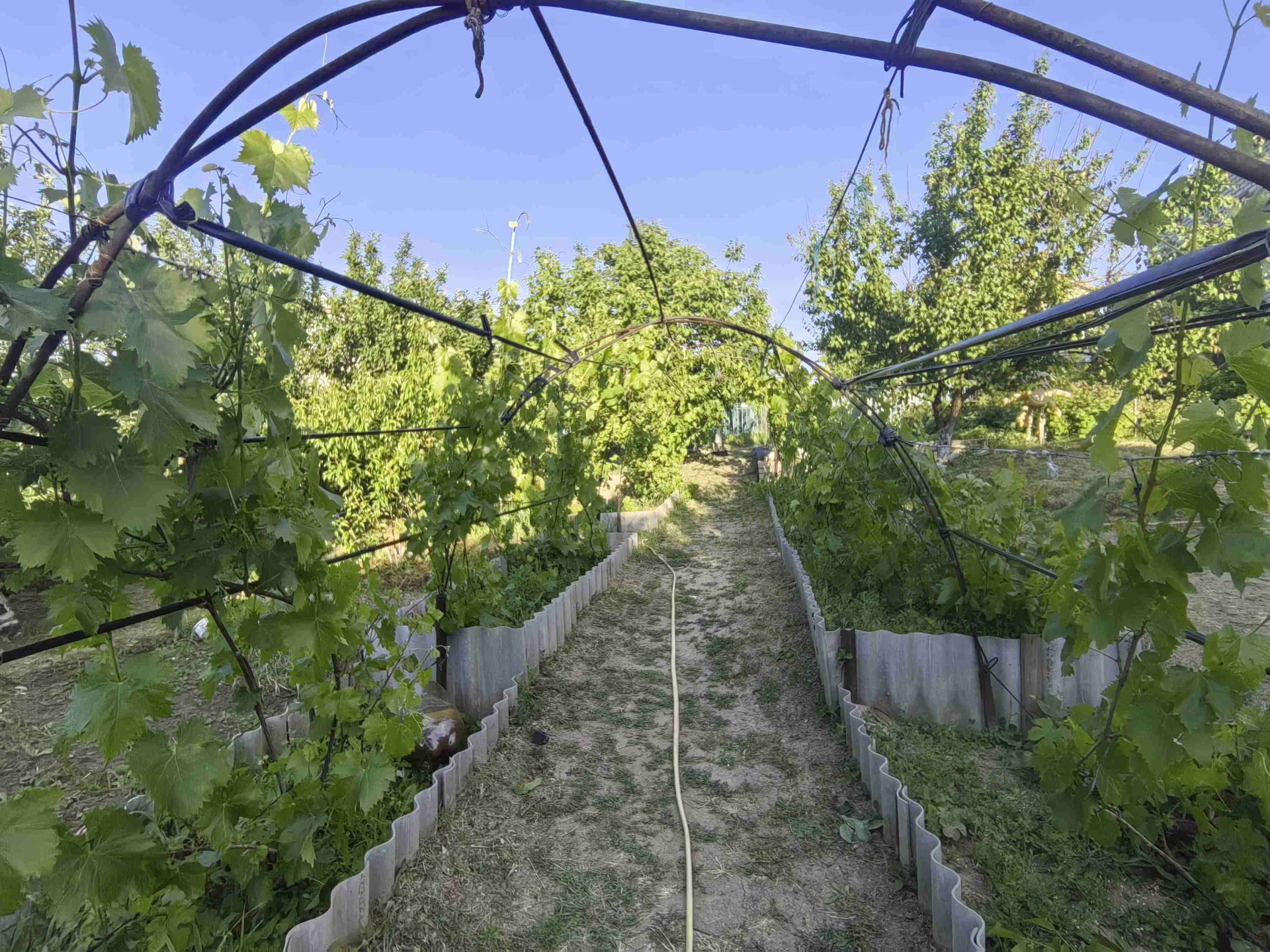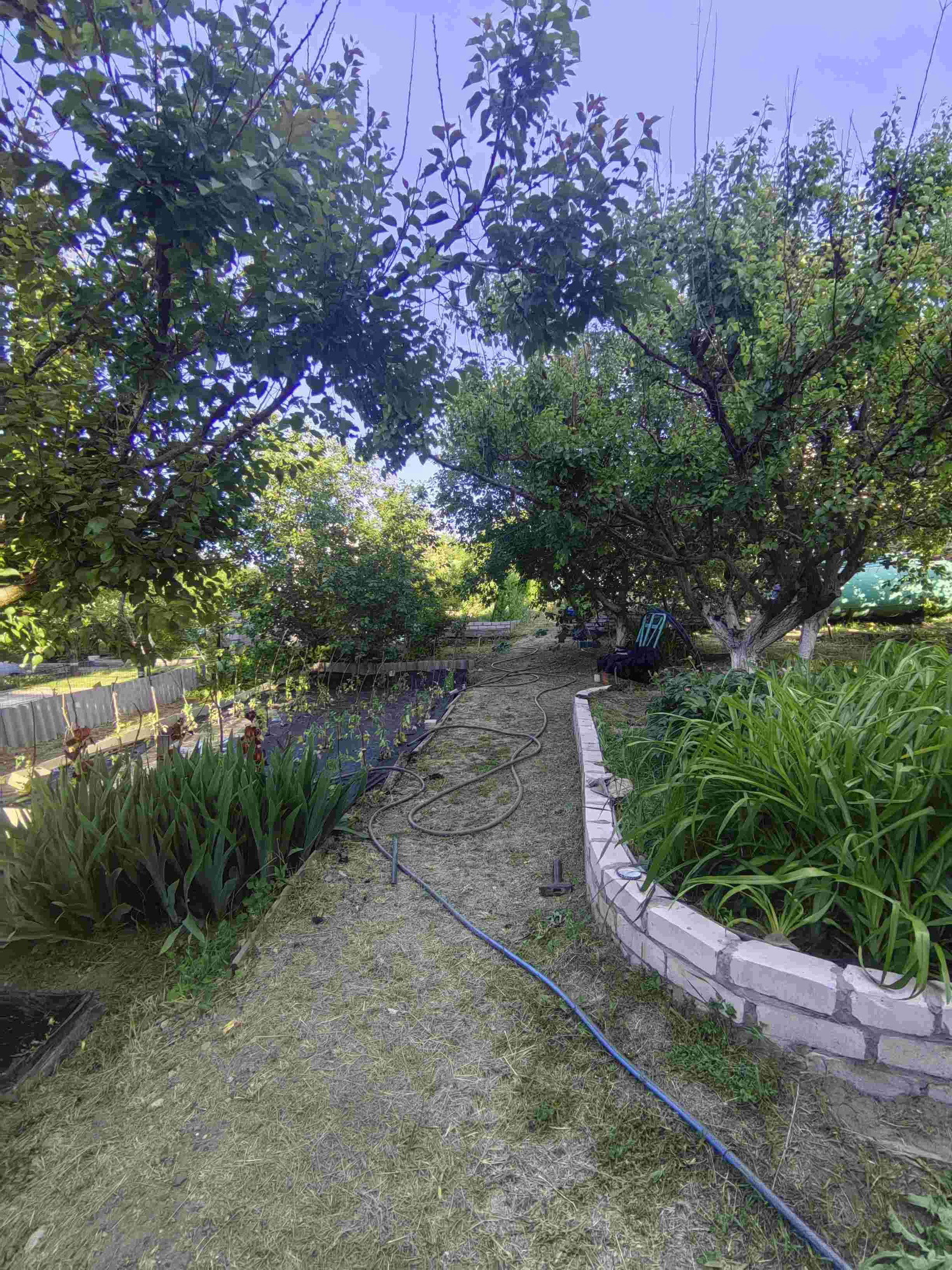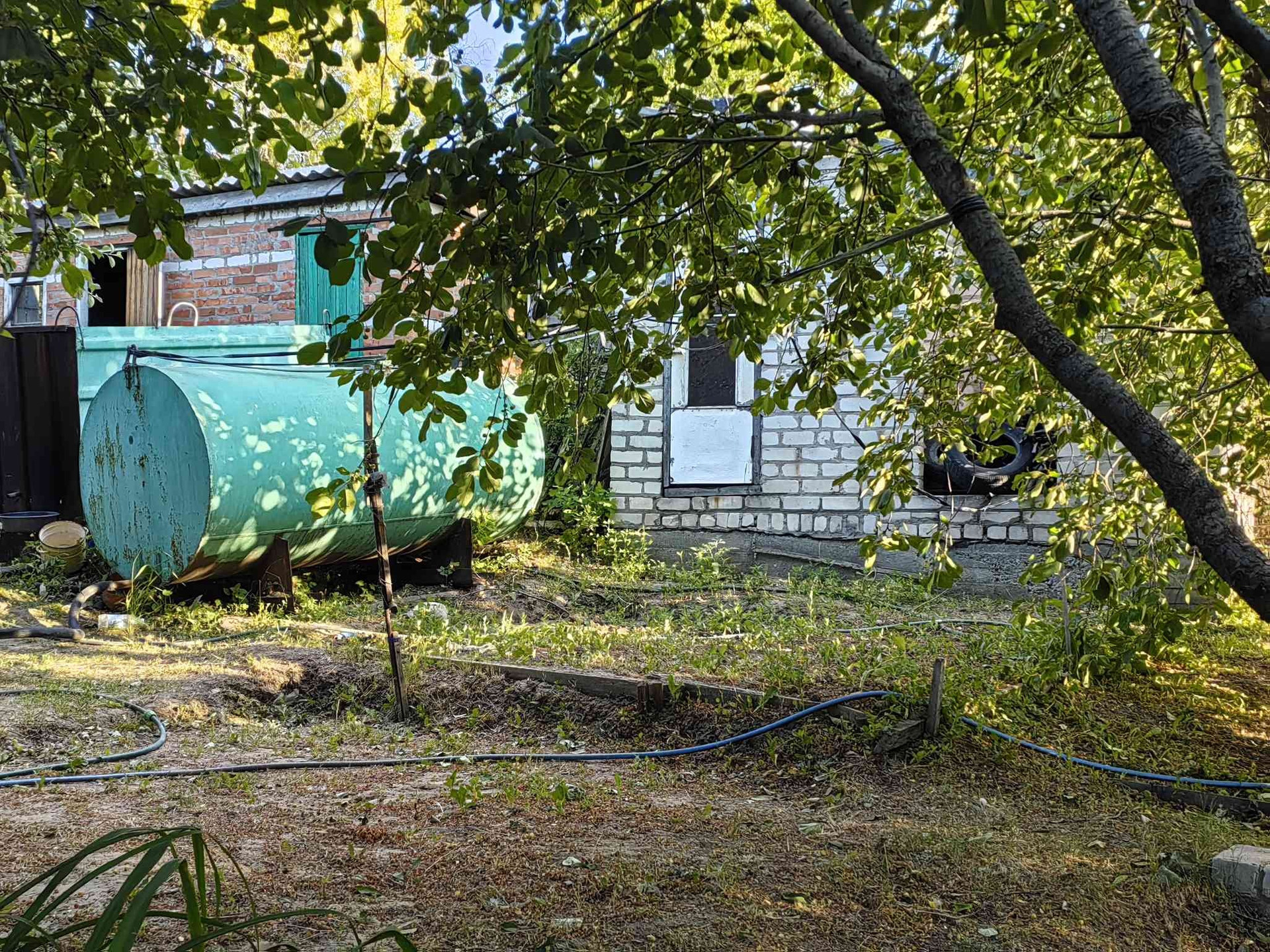 Участок ухоженный, место под бассейн каркасный. Поливные трубы и краны новые.