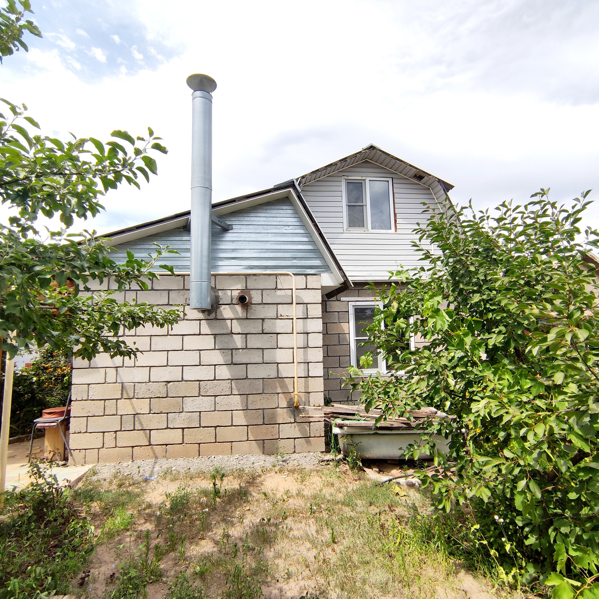 Второй дом- новой постройки, блочный, двухэтажный. Газифицированный. Отопление-двухконтурный котёл. На первом этаже кухня (стены подготовлены под отделку) и просторная гостиная. На второй этаж (мансарда) ведёт удобная деревянная лестница. Установленны пластиковые окна, современные радиаторы отопления. Есть тёплый пол.