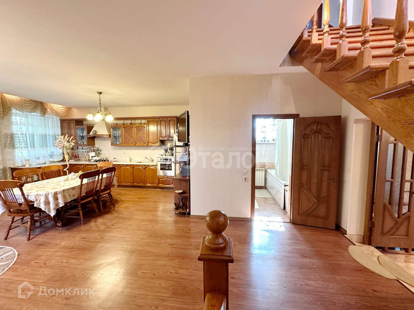 Общая площадь 181,9 кв.м., введен в эксплуатацию в 2014 году, земельный участок 7,73сот. ровный, правильной формы, по периметру огорожен забором. Дом расположен на тихой не проездной улице. Коммуникации ВСЕ ЦЕНТРАЛЬНЫЕ, в т.ч. канализация. Установлены 2 двухконтурных котла (используется один, второй - запасной), газовая колонка Bosh, в сан.узле на 1эт. и в бане- водонакопители на 100л. Стены -керамзитобетонные блоки, фасад - красный облицовочный кирпич, толщина стен 60 см, строился единой конструкцией, пристроек нет, фундамент ленточный, кровля - гибкая черепица (шинглас), площадка перед дом и дорожке внутри двора - брусчатка. Строили для себя, использовали исключительно качественные строительные и отделочные материалы. Евроотделка выполнена в классическом стиле, высокие потолки из гипсокартона, импортная сантехника, кухонный гарнитур Мария. Площадь 1-го этажа 120 кв.м. На первом этаже расположены: просторная кухня-гостиная (43 кв.м.), холл, совмещенный санузел, кухня (32 м.кв.) с русской печью, уголок зимнего сада, парная, душевая, бойлерная и кладовая. Площадь 2-го этажа 70кв.м. На втором этаже расположены три раздельные комнаты, кладовая с окном, сан. узел. Лестница на второй этаж выполнена из монолитного дуба. На участке расположены: гараж (красн. облиц. кирп.) 60м2 с двумя въездными воротами, зона «барбекю» со стационарным мангалом из облицовочного кирпича, хозпостройки, две теплицы из поликарбоната. Дом оборудован сигнализацией и системой видеонаблюдения. Участок засеян газоном, в саду - множество плодовых деревьев, кустарников и цветов. Дом продается в связи с переездом в другой город, документы к сделке готовы.