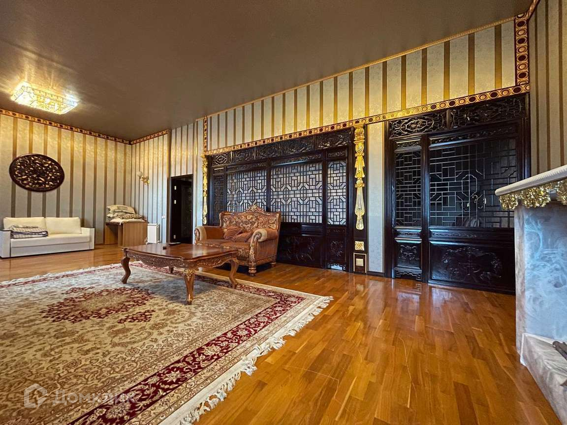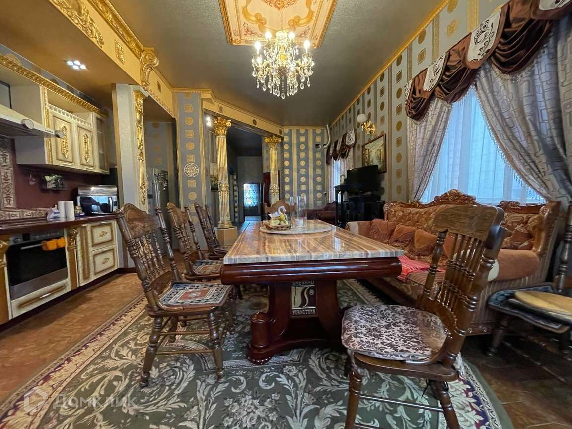 Вся роскошная мебель и кухонный гарнитур из массива дерева с золотой отделкой привезена из Гонконга.