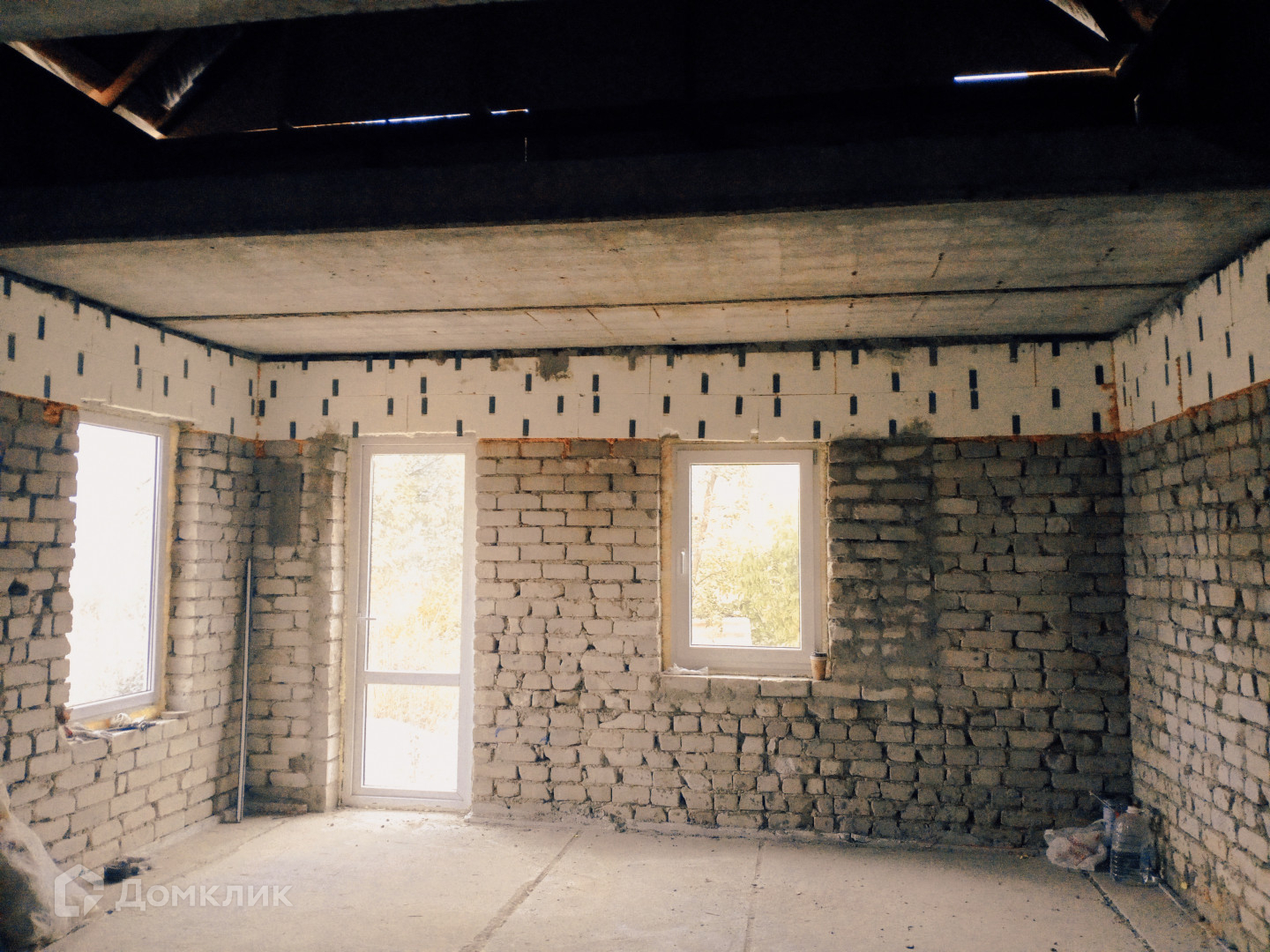Перекрытия ж/б плиты. Установлены пластиковые стекло пакеты.