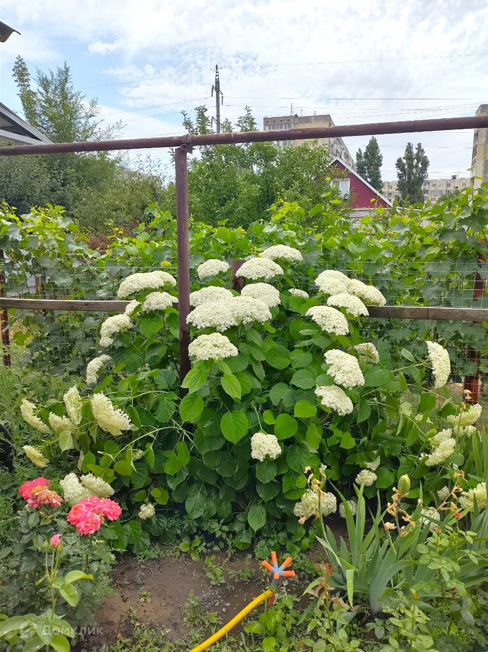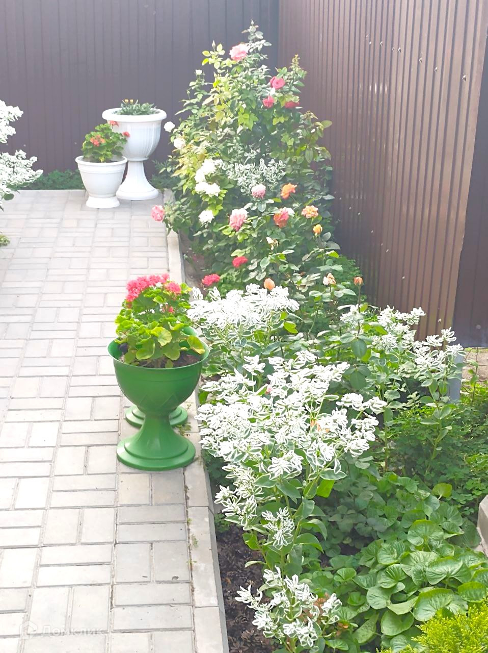 Каждый день вы будите созерцать ухоженный цветущий участок с разного рода растениями – туи, розы, можжевельник, клематис, разные сорта хоста, пионы, бересклет и плодоносящими деревьями: груша, черешня, слива, яблоня.