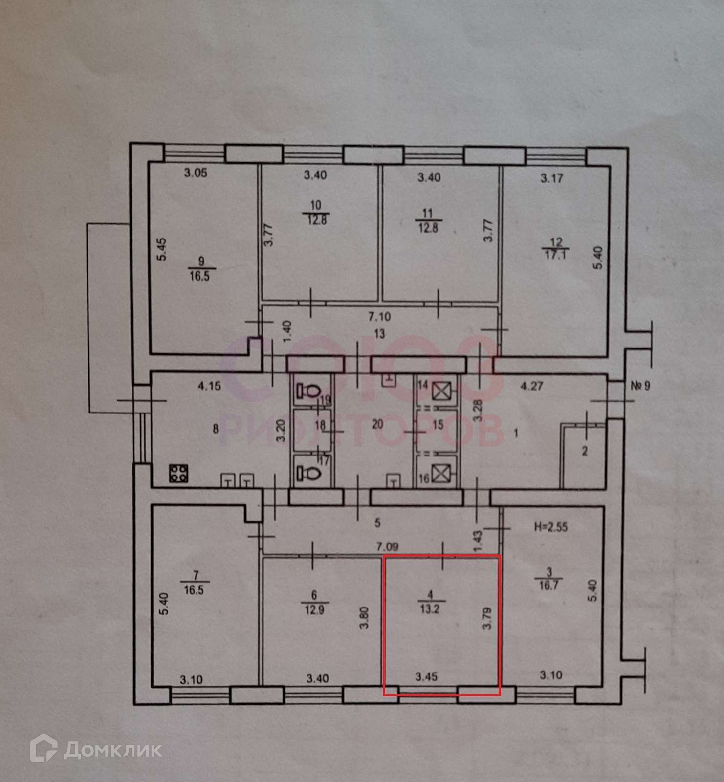 Высота потолков 2.55 м