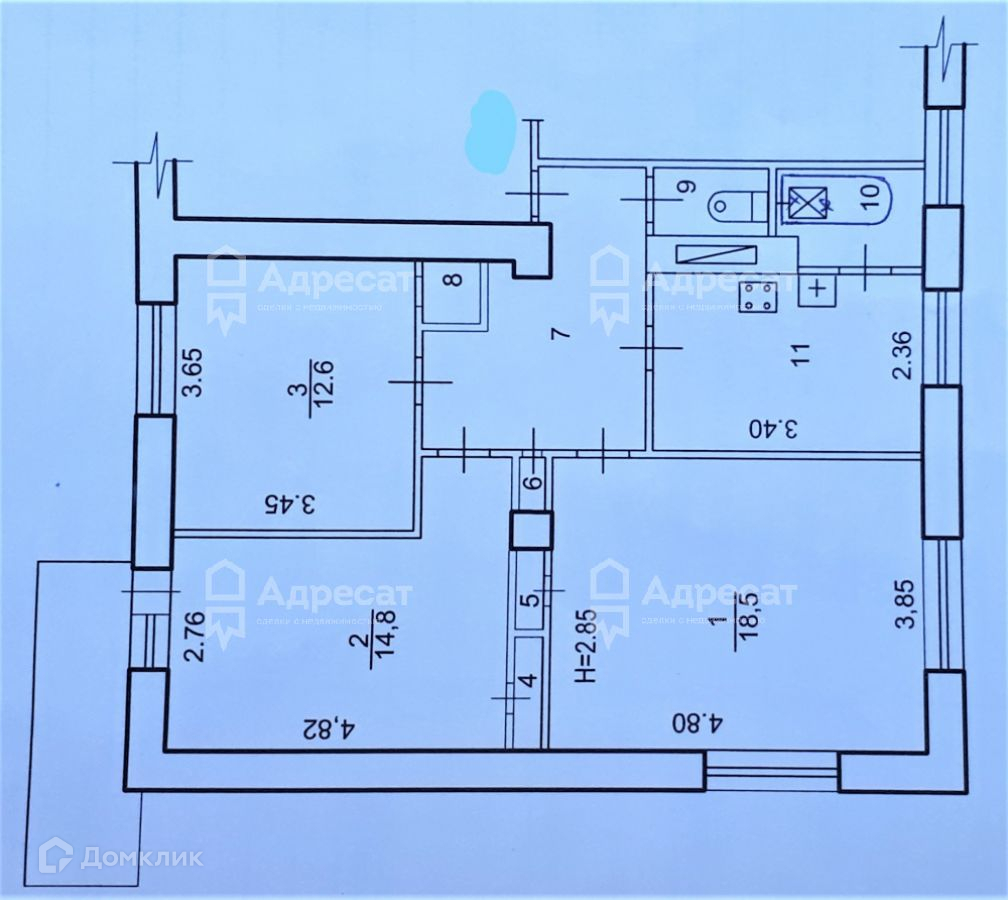 Комната, 68.9 м2, на продажу в Волгограде, улица Шурухина, 8