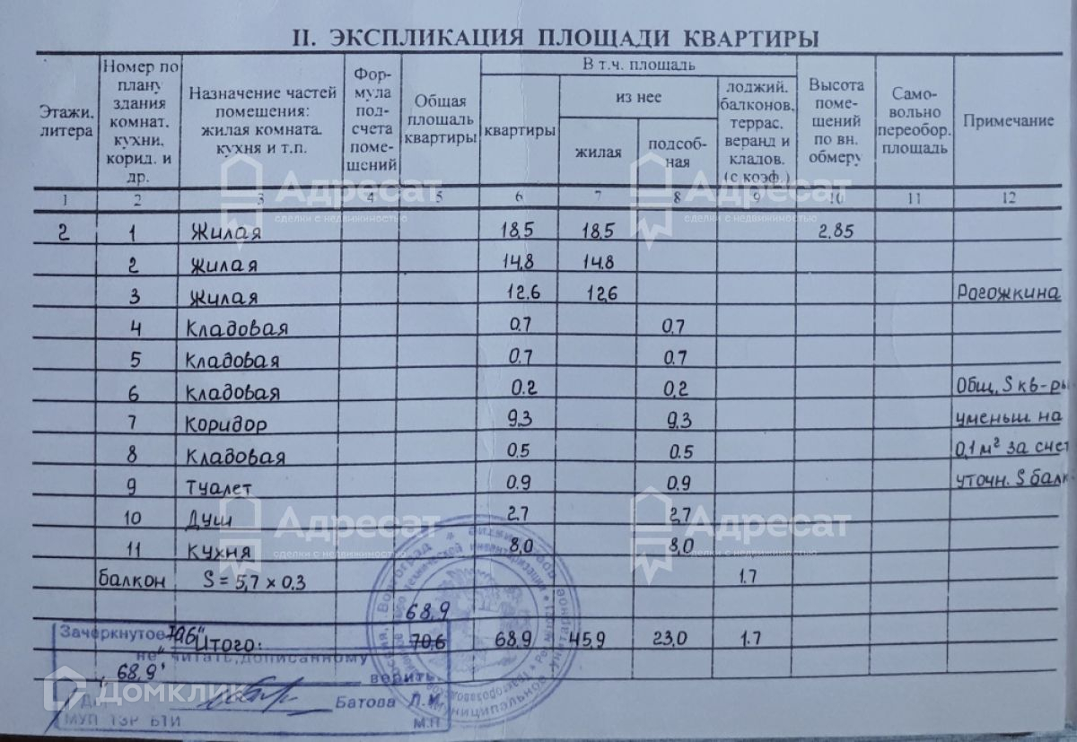 Общая площадь 68.9 м2