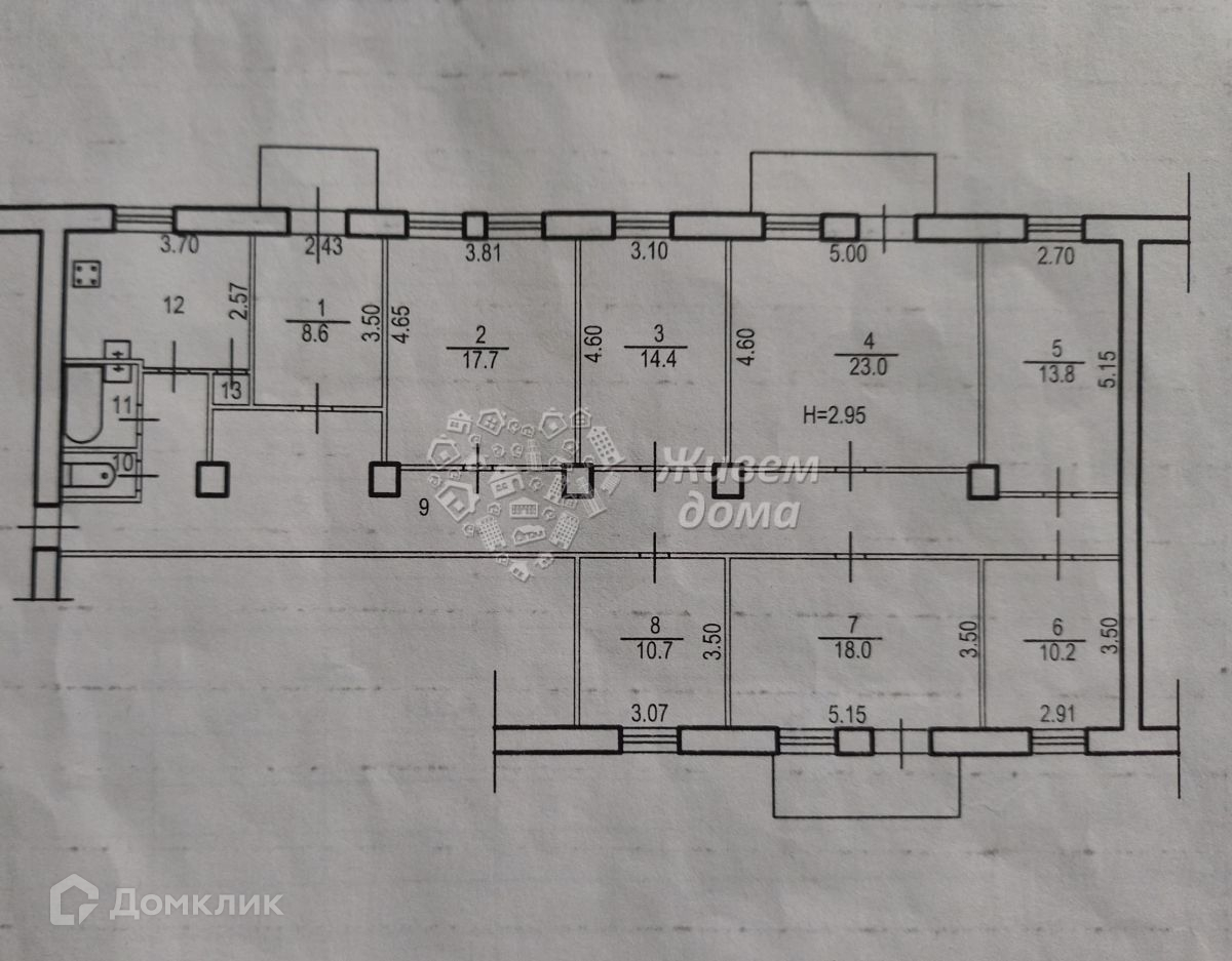 Высота потолков 2.95 м