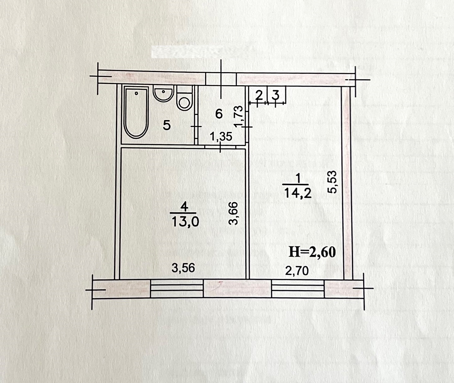 Высота потолков 2.6 м