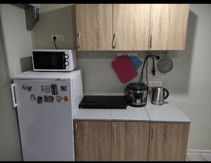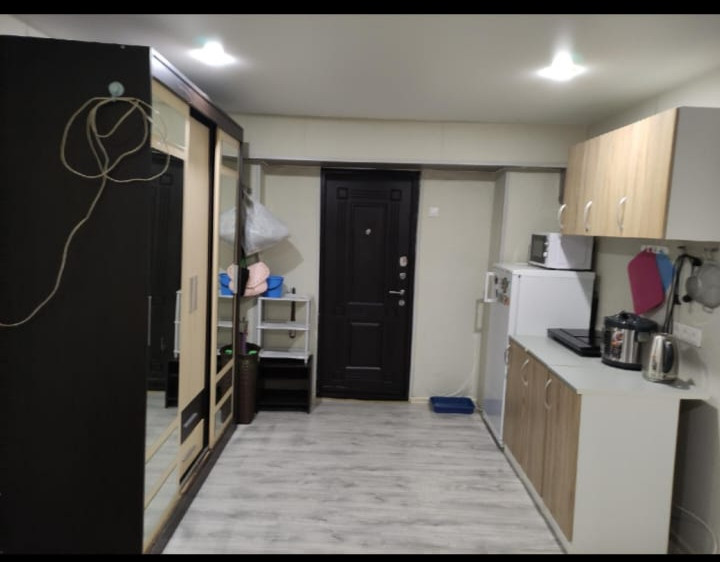 Продается вместе с мебелью и бытовой техникой: кухонные шкафы и рабочая поверхность, стенка, диван, стол, сплит система, холодильник, стиральная машинка.