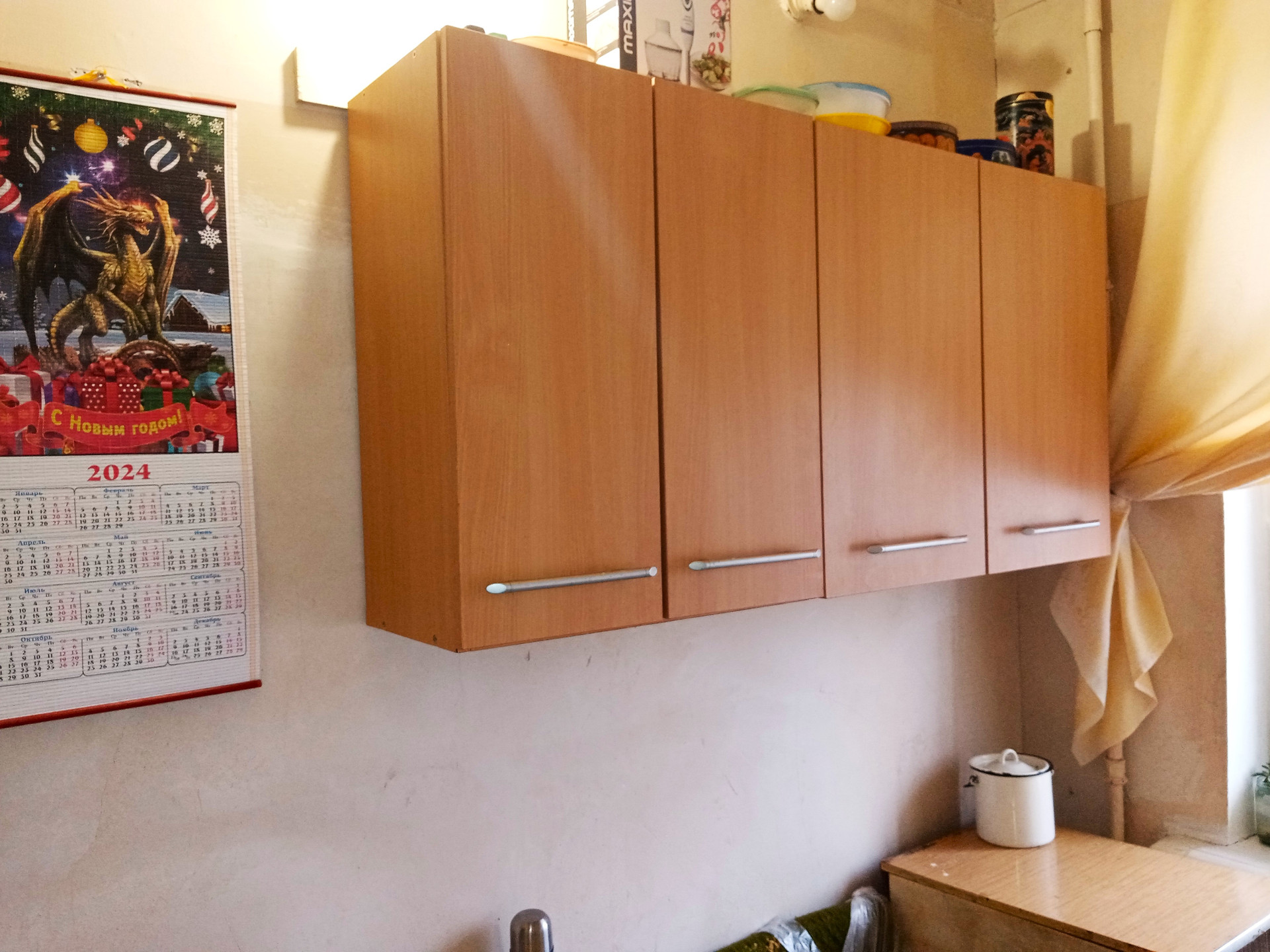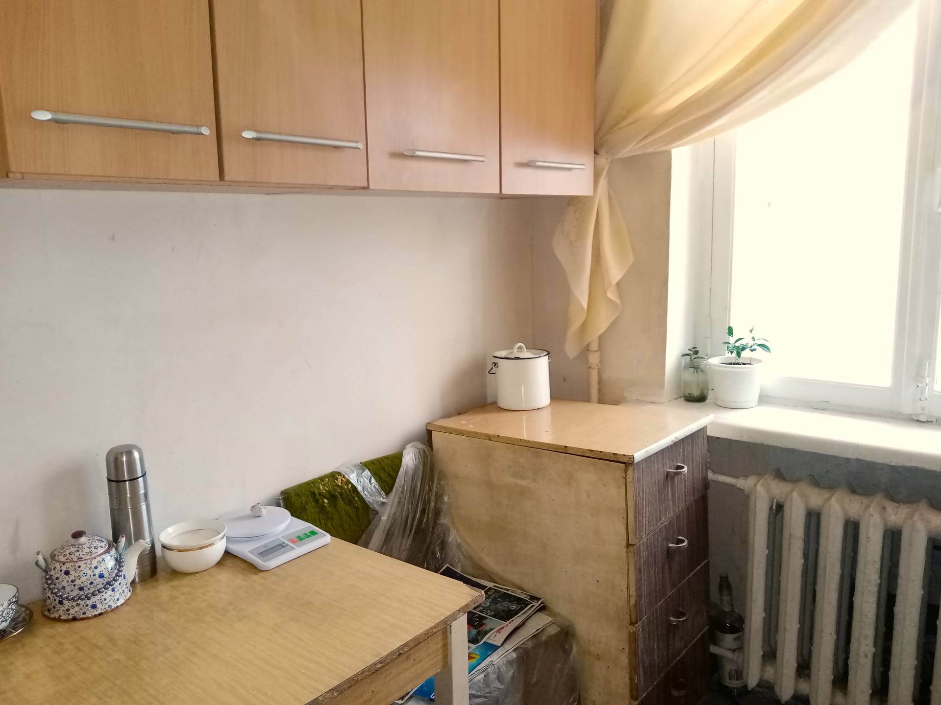 На кухне: шкафчики и стол – остаются покупателю.