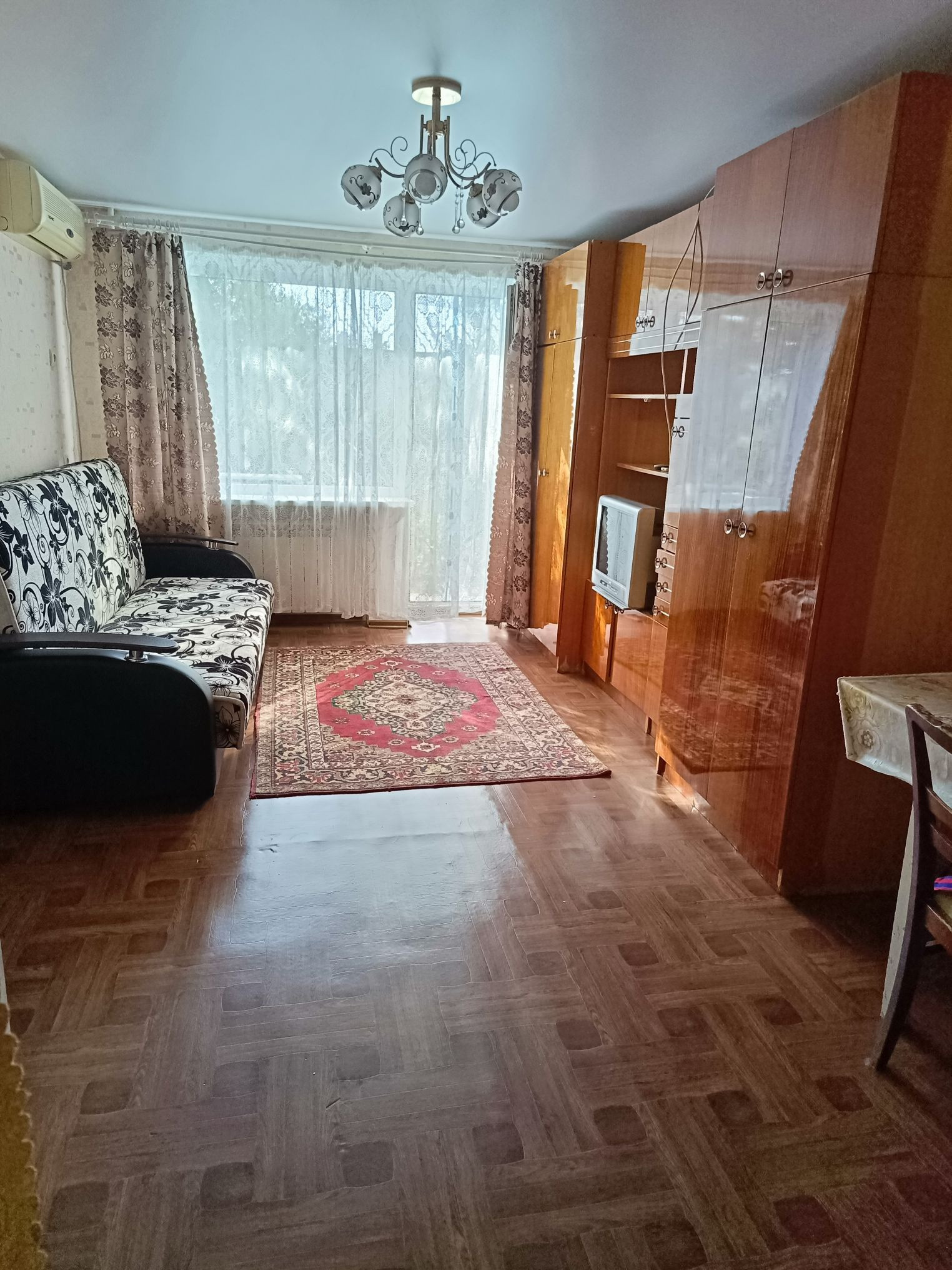 В подарок покупателю остаются сплит-система, стенка, диван, кухонный шкаф, тумбочка под раковину. В комнате есть кладовка. Также в коридоре есть отдельная кладовка для хранения вещей.