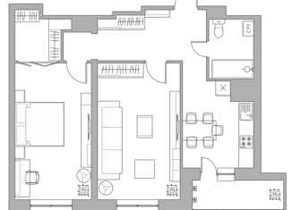 Общая площадь: 43.2 м2