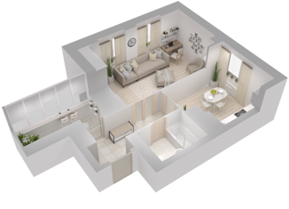 Общая площадь: 55.4 м2