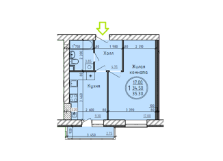 Общая площадь: 34 м2