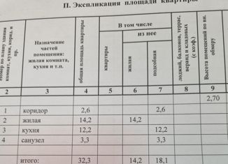 Продаю 1-комнатную квартиру, 32.83 м2, улица Иссы Плиева, 7