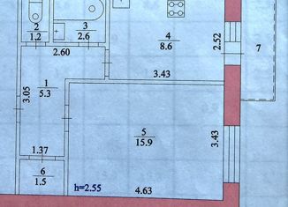 Общая площадь: 42.6 м2