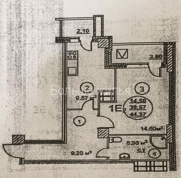 Общая площадь 44.4 м2