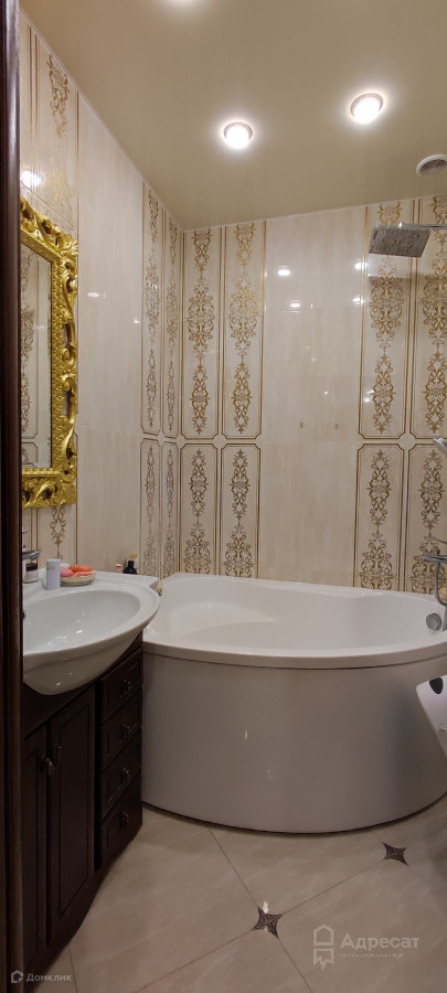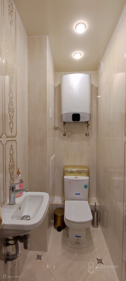 Санузел раздельный. Дорогая современная Испанская плитка, сантехника в квартире производства Италии и Германии. Установлены счетчики на горячее и холодное водоснабжение. На кухне установлен фильтр с системой обратного осмоса, бойлер. Обои производства Италии. Мебель в кухне цвета молочный дуб с золотой патиной.