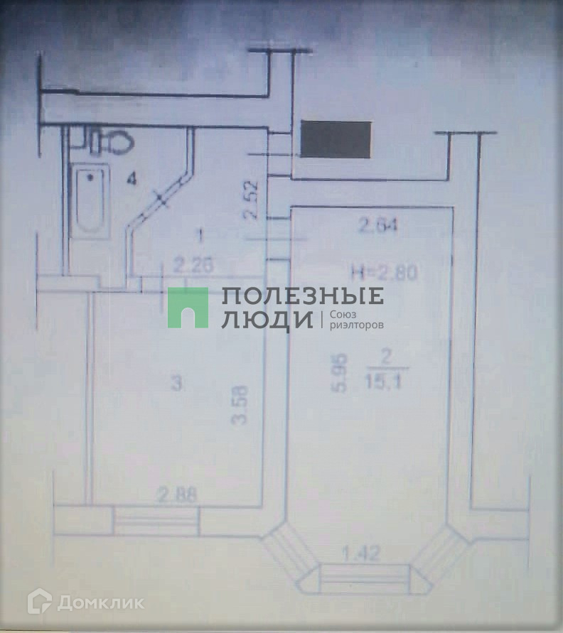 Жилая площадь 15.1 м2