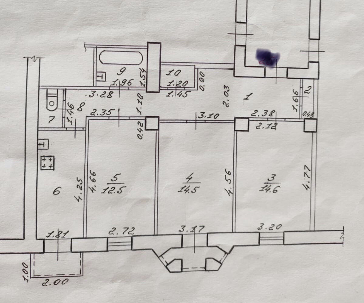 Высота потолков 3 м. Квартира не угловая.