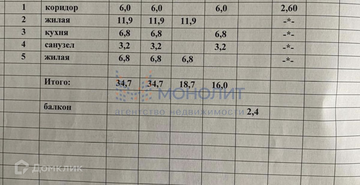 Общая площадь 34,7 кв.м, жилая 18,7 кв.м.