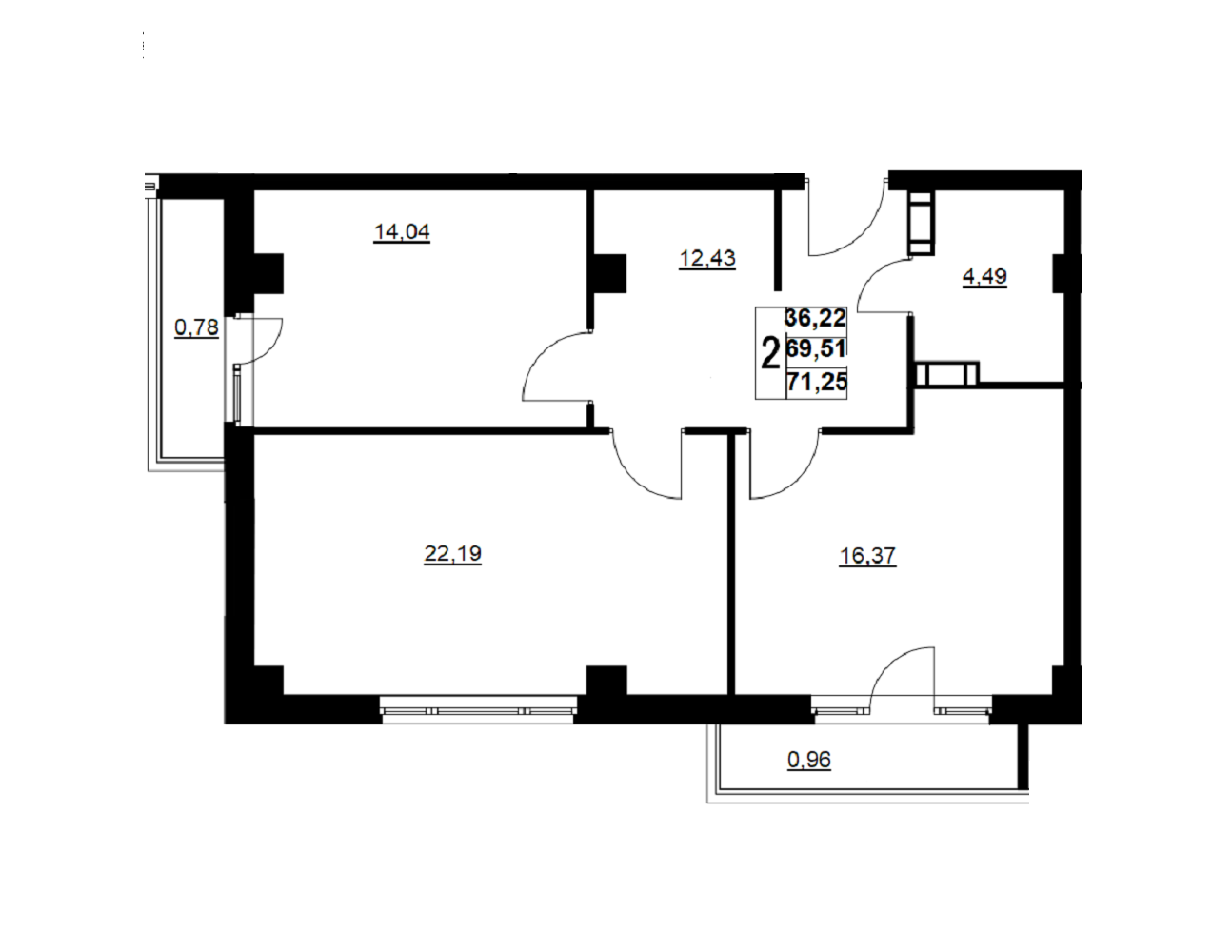 Общая площадь 71.2 м2