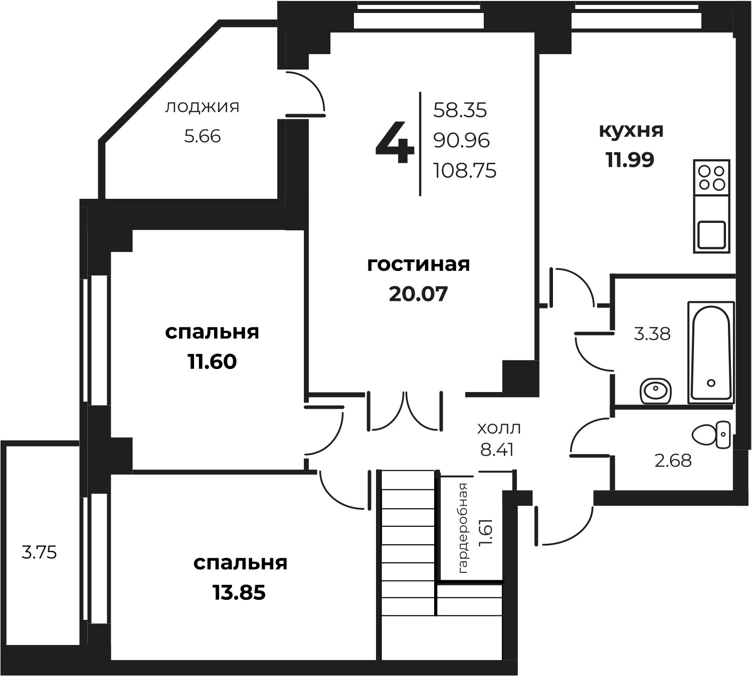 Общая площадь 81.68 м2