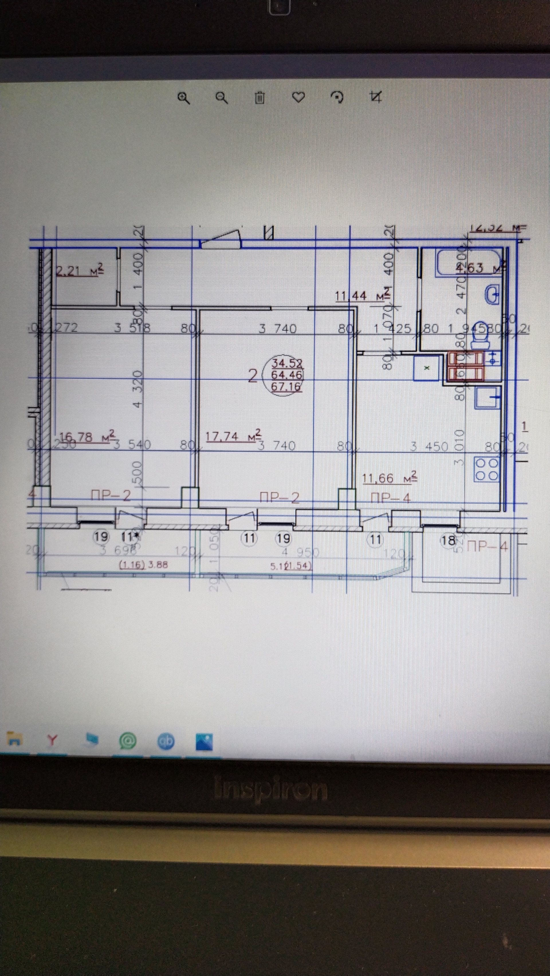 Площадь квартиры - 64,6 кв.м., жилая - 35 кв.м., кухня - 11,66 кв.м.