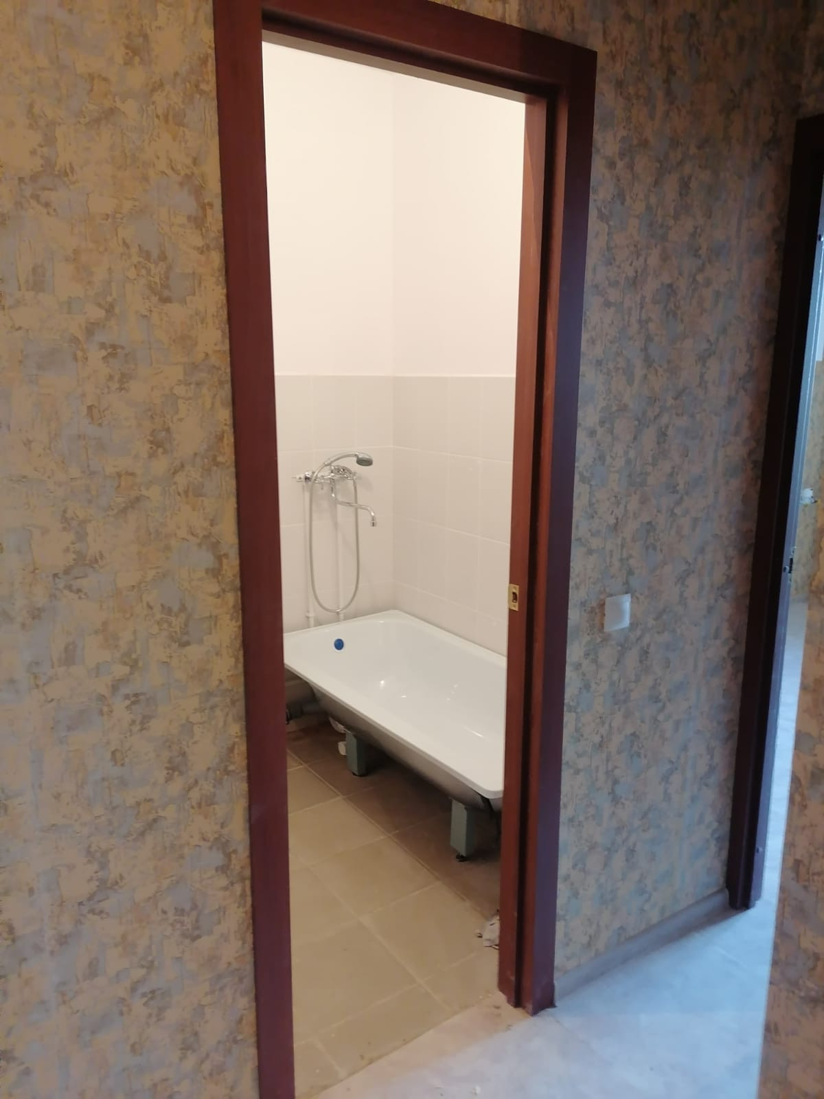 В квартире выполнен ремонт от застройщика: обои, линолеум, натяжные потолки, ванная комната и туалет в современном кафеле.