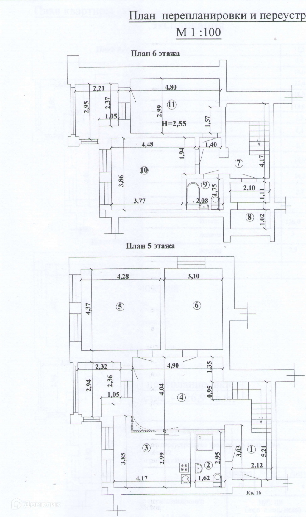 Высота потолков 2.55 м