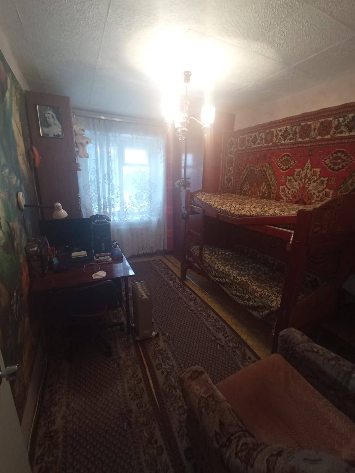 В квартире две раздельные и просторные комнаты. Сан узел раздельный. Кладовая.
