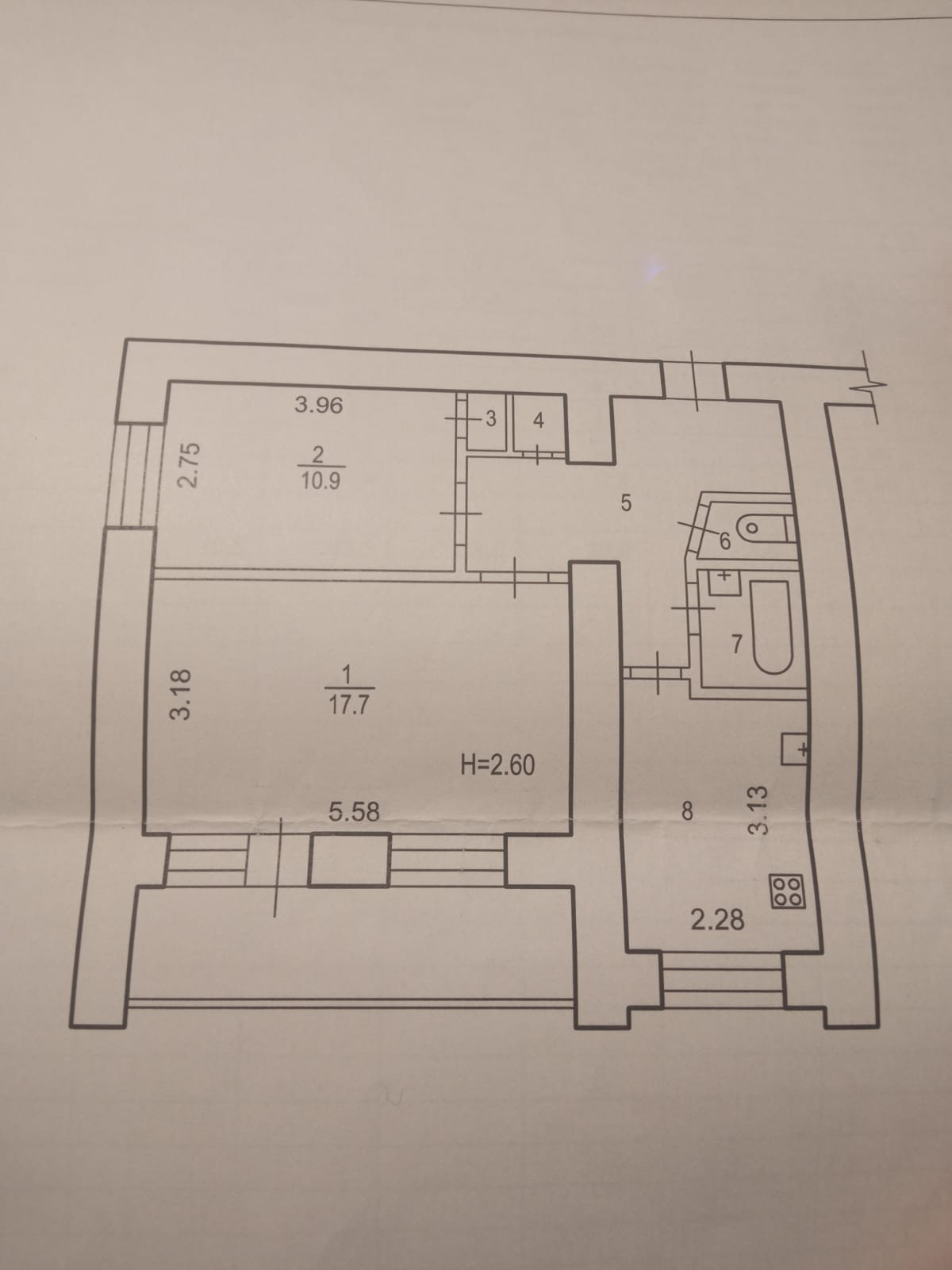 Высота потолков 2.6 м