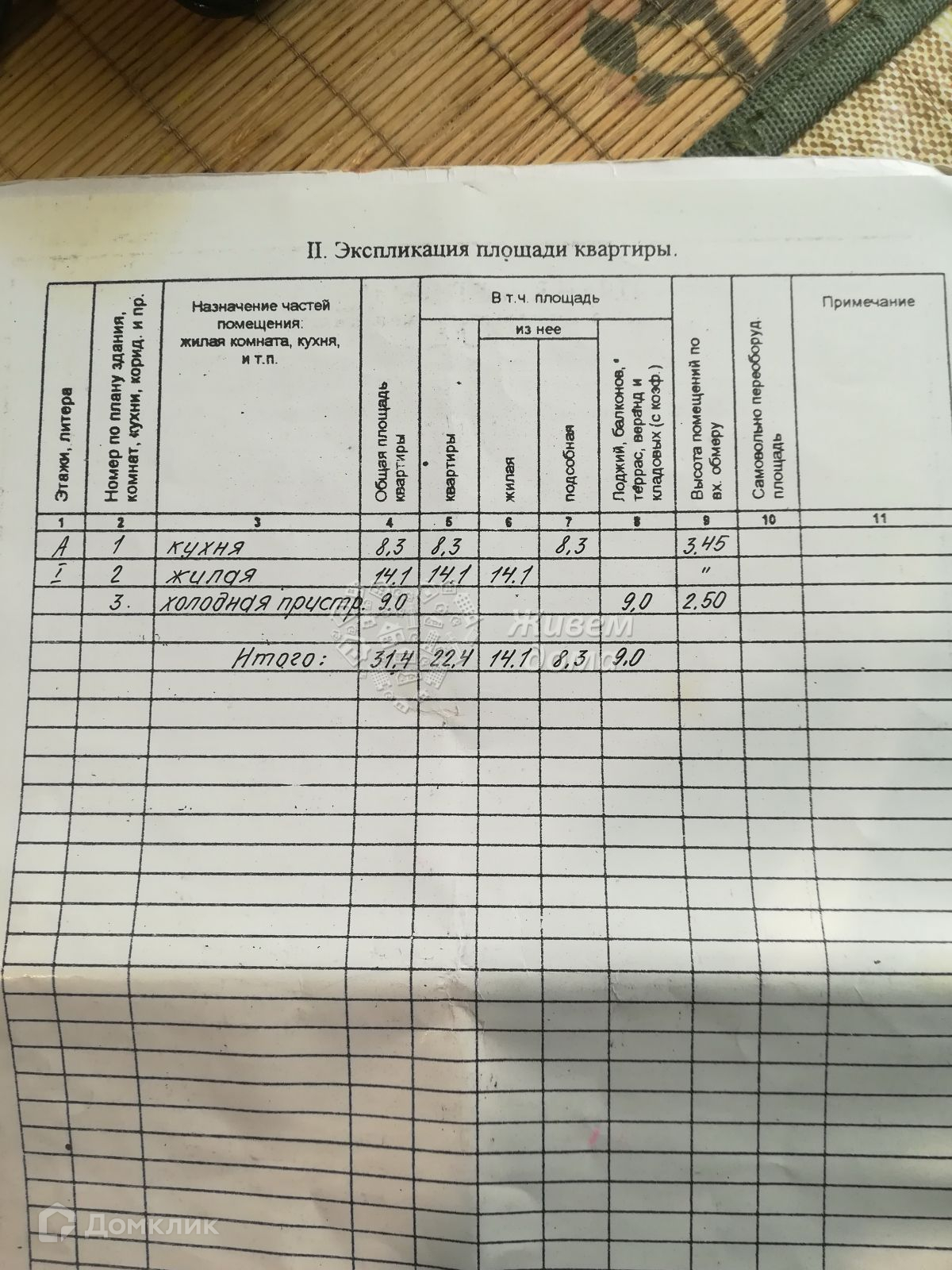 Общая площадь 31.4 м2